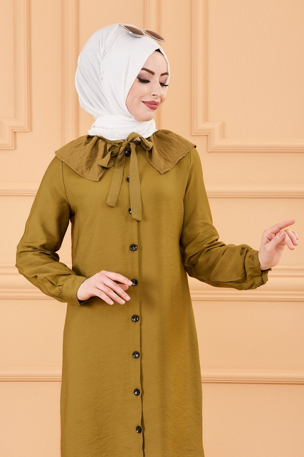 Tunique chemise boutonnee habillee (Vetement pour femme voilee) - Couleur kaki