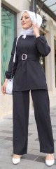 Ensemble femme : tunique et pantalon avec ceinture (Vêtement femme voilée) - Couleur noir - REF. 32328 (29.90 €) - En Promotion à 23.90 €