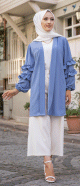 Gilet Veste long col châle manches à froufrou (Grande taille disponible) - Couleur Bleu - REF. 33939 (25.00 €)