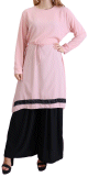 Robe longue à capuche effet plissée pour femme musulmane (Vetement moderne pour hijab) - Couleur rose et blanc - REF. 33988 (28.00 €)