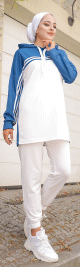 Tenue décontractée et sport deux pièces (Tunique et Pantalon) adaptée à la femme musulmane - Vêtement à 3 couleurs : noir, bleu et blanc - REF. 32919 (24.90 €)