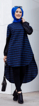 Tunique longue à rayures (Vetement femme voilée) - Couleur noir et bleu - REF. 35289 (16.90 €)