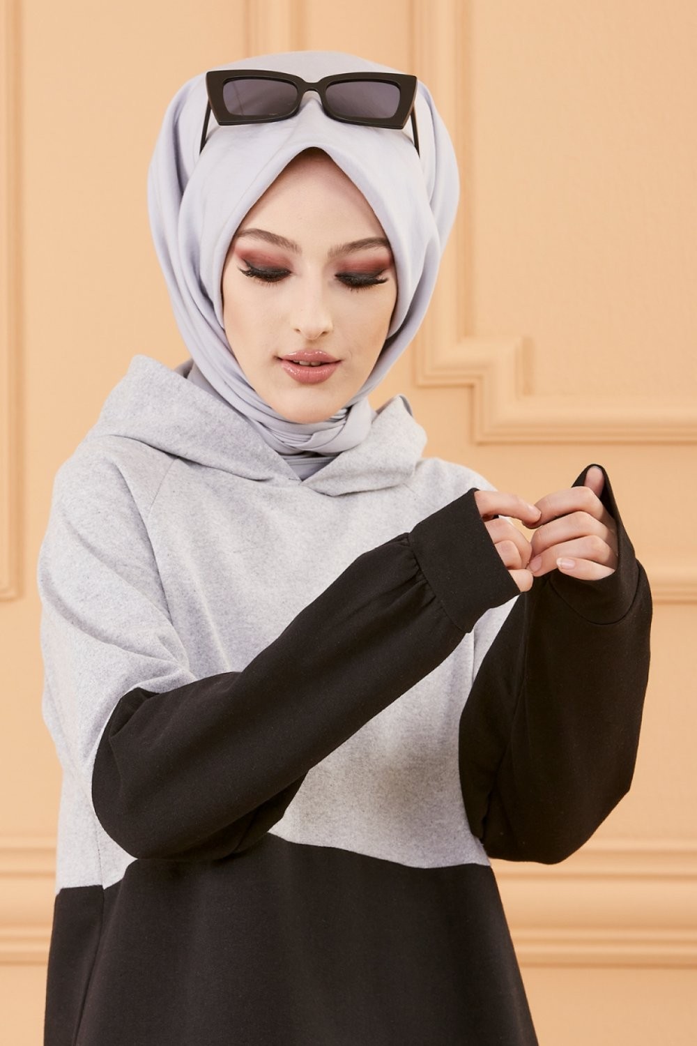 Tunique décontractée avec capuche (Vetement moderne femme voilée) - Couleur anthracite - REF. 35559 (23.00 €)