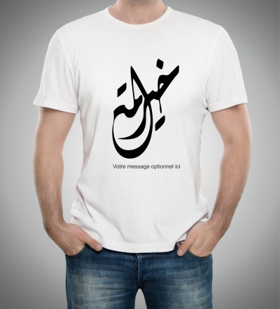 T-Shirt personnalisé avec un prénom calligraphié en arabe et message optionnel (plusieurs couleurs disponibles) - REF. 20104 (14.90 €)