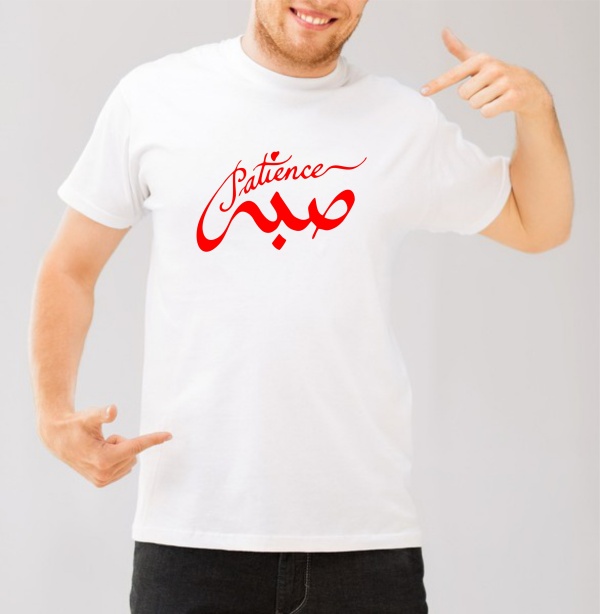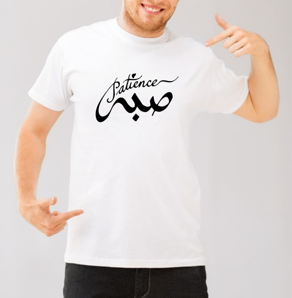 T-Shirt avec calligraphie arabe du mot "صبر" (Sabr) qui signfie "Patience".