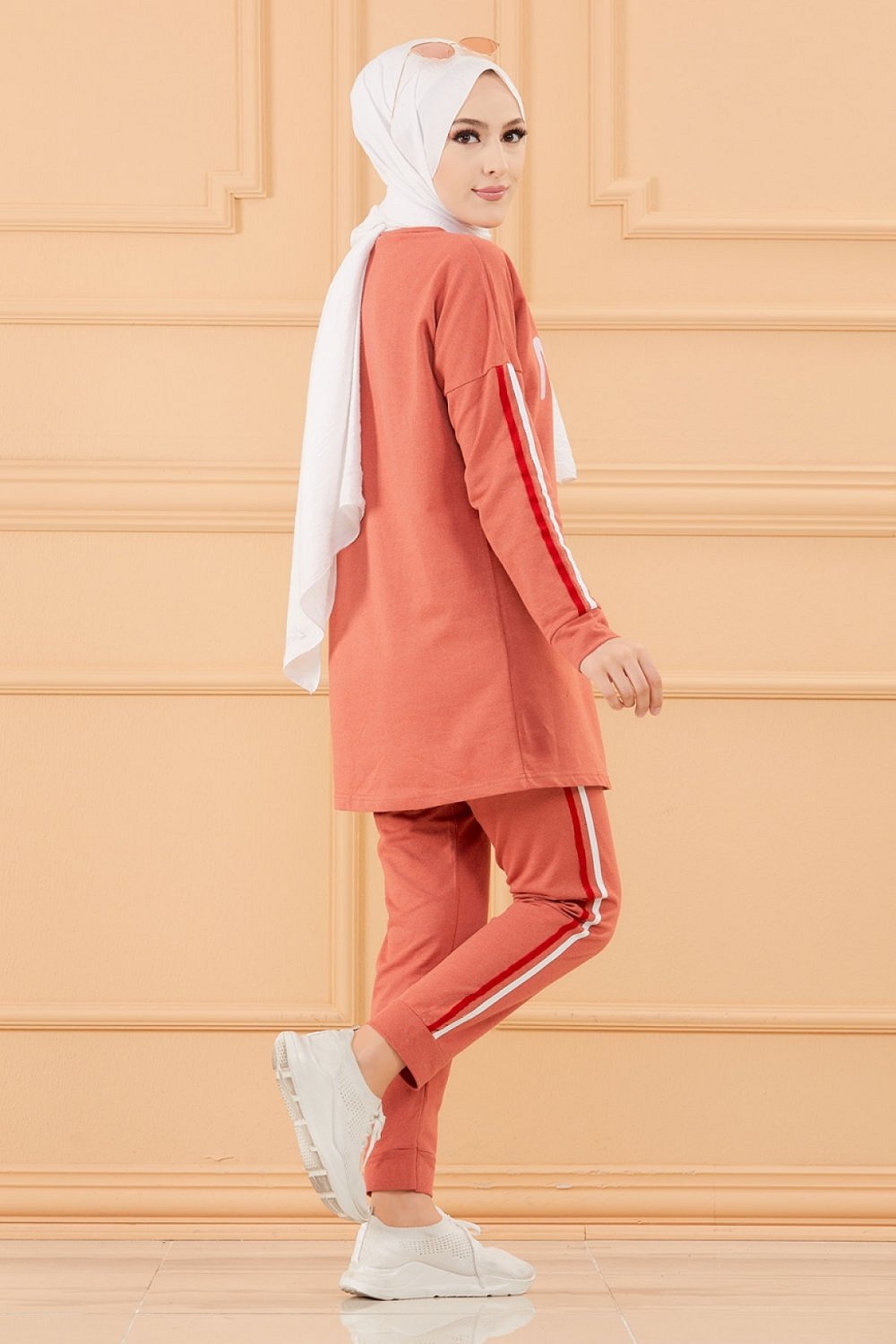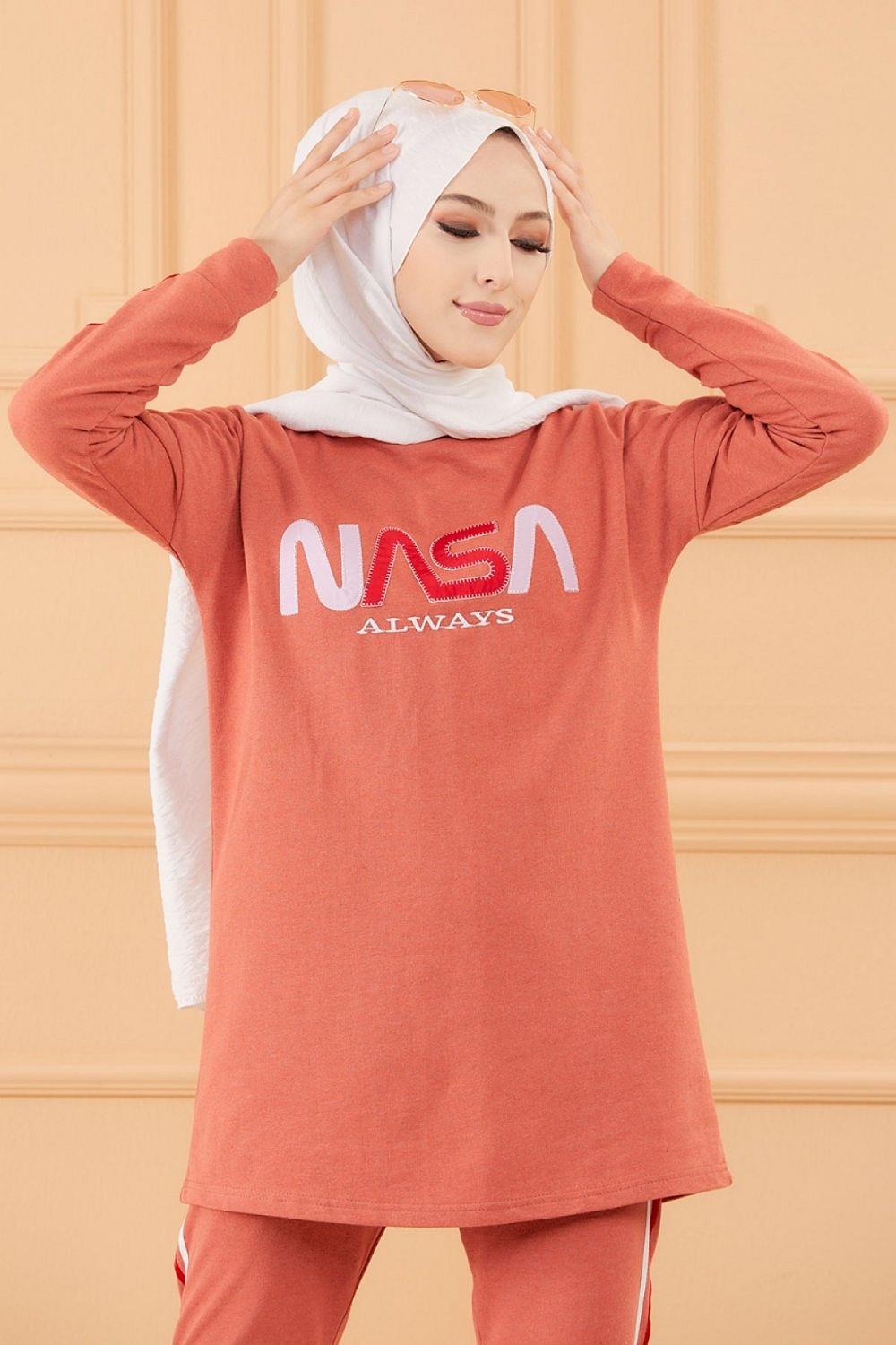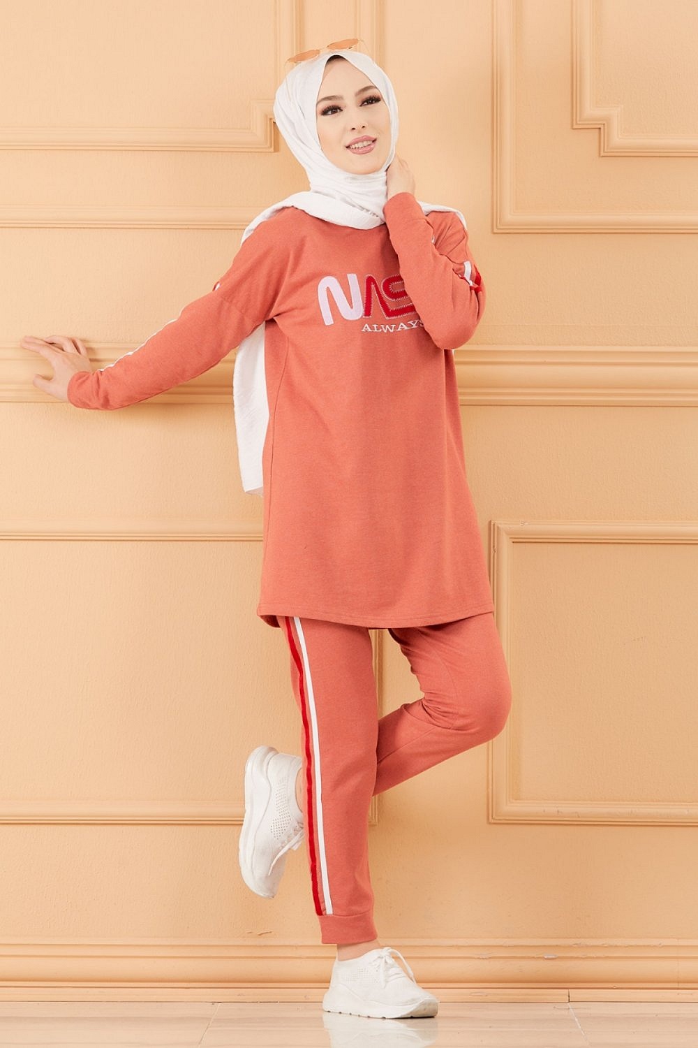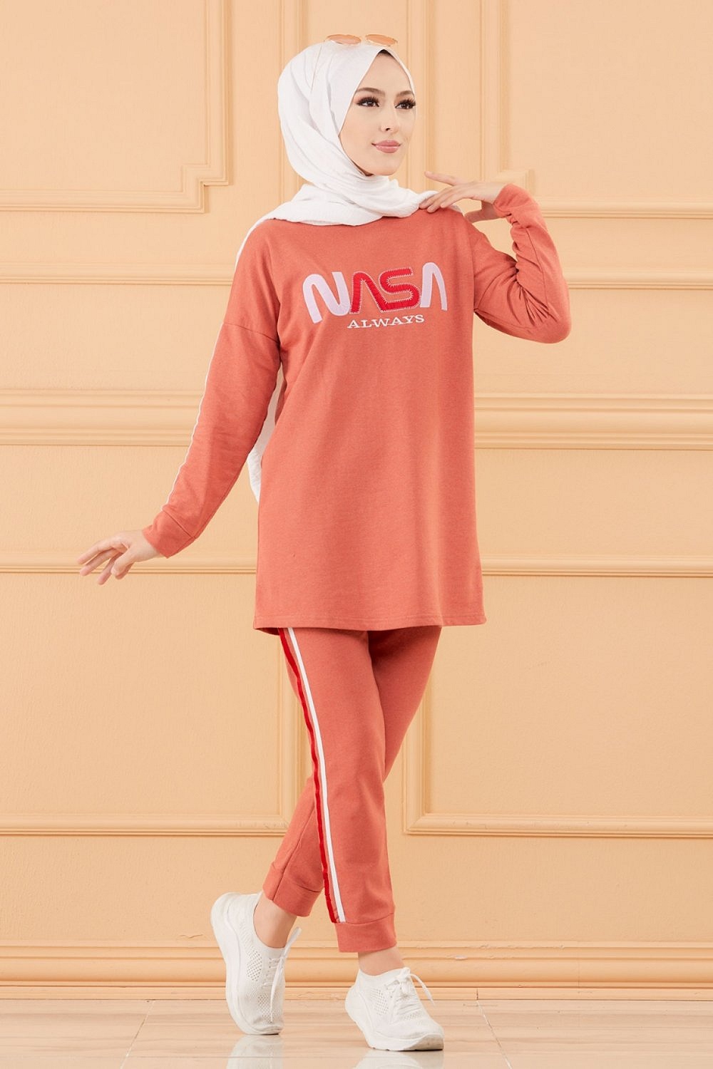 Ensemble survetement brode "Nasa" pour femme (Tenue de sport pour Hidjab -Boutique musulmane) - Couleur brique