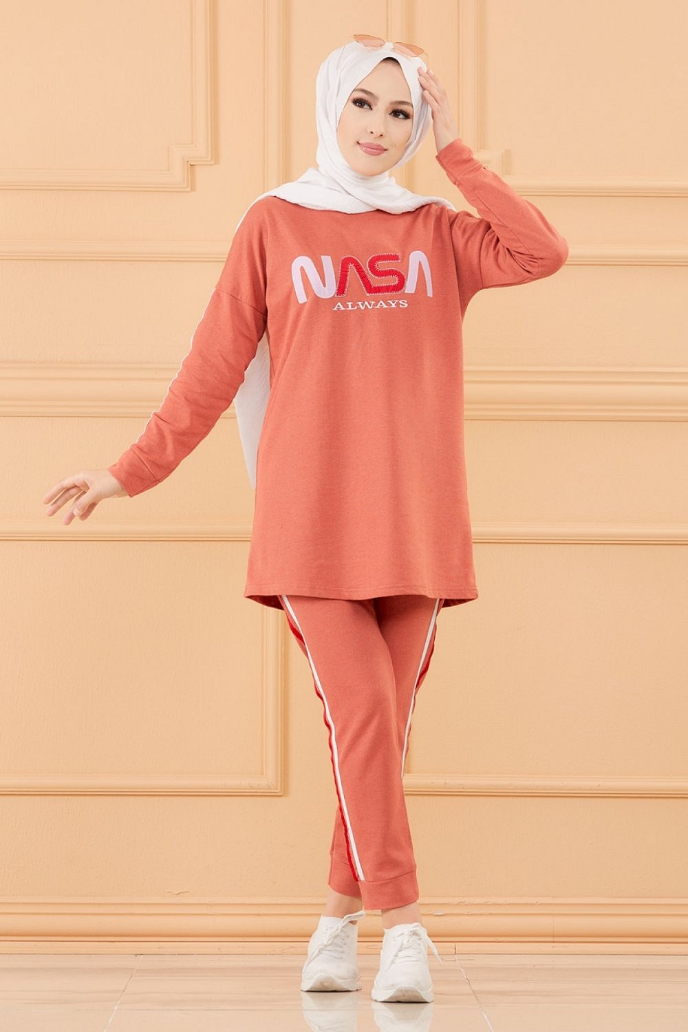 Ensemble survêtement brodé "Nasa" pour femme (Tenue de sport pour Hidjab -Boutique musulmane) - Couleur brique Vetement & Accessoire