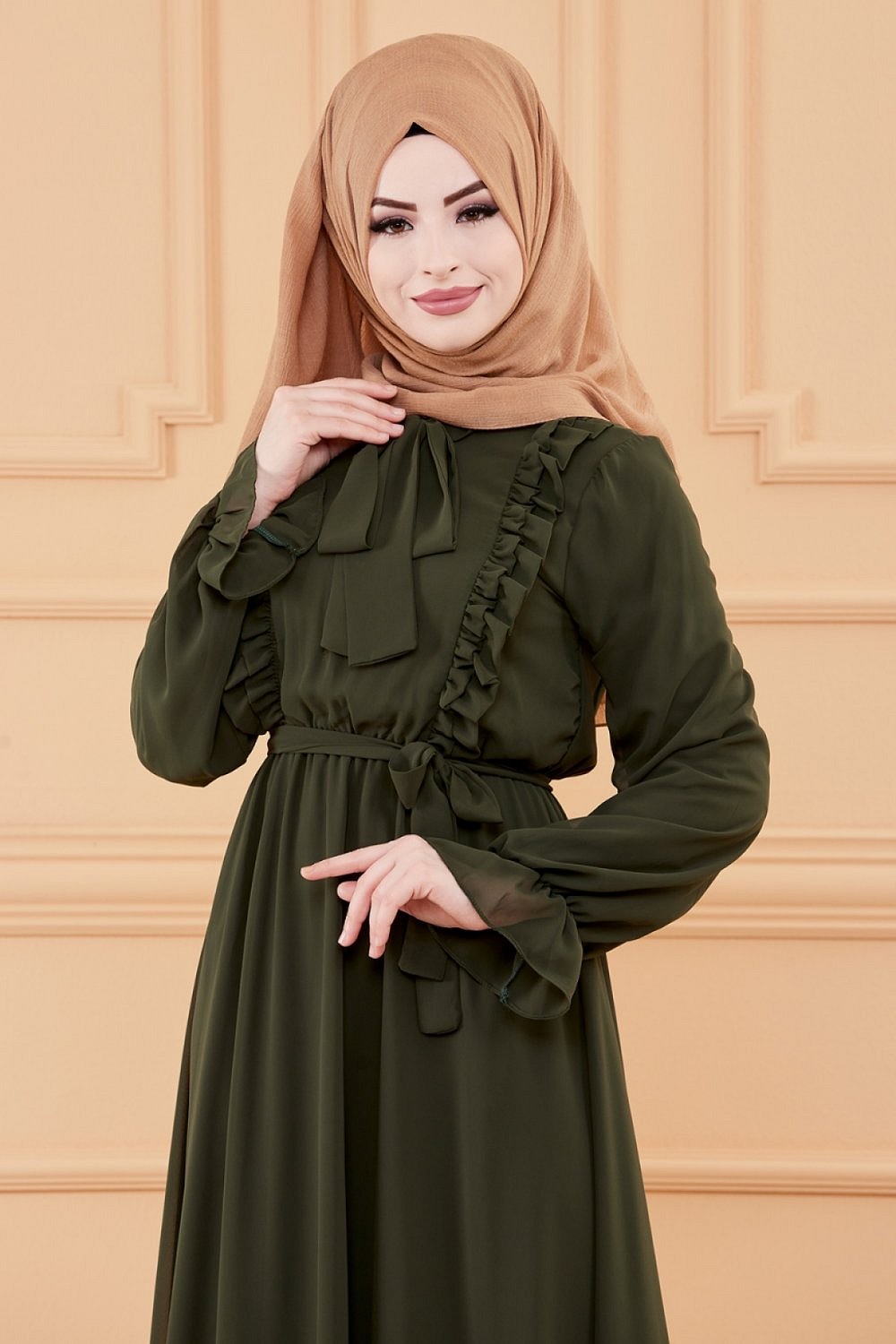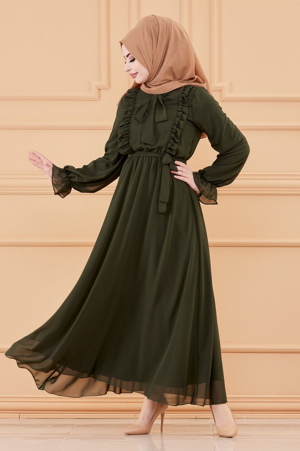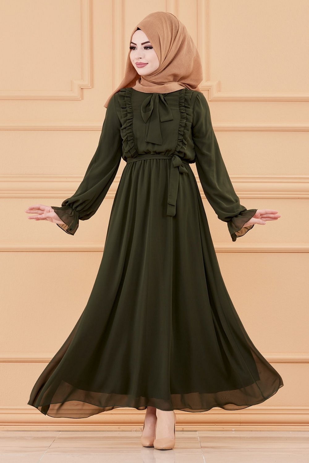 Robe de soiree pour femme (Tenue style habille pour hijab) - Couleur kaki