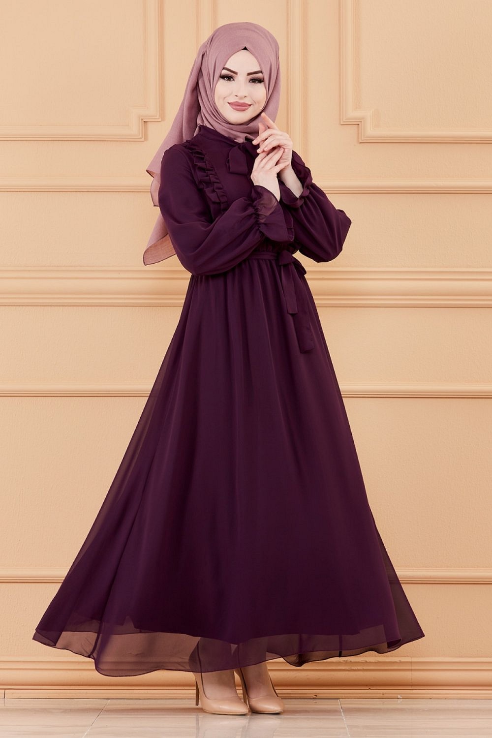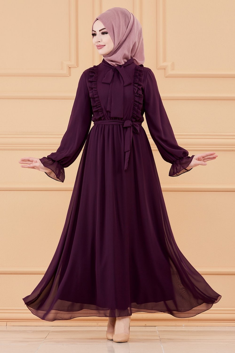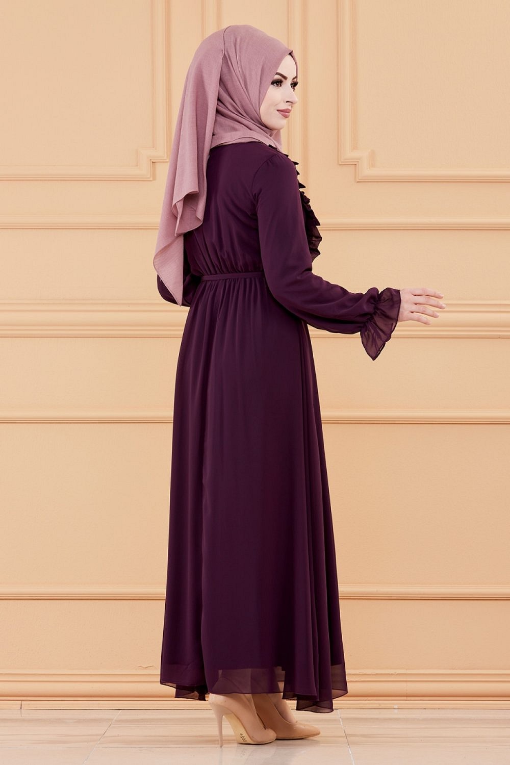 Robe de soirée chic pour femme (Tenue style habillé pour hijab) - Couleur prune Vetement & Accessoire