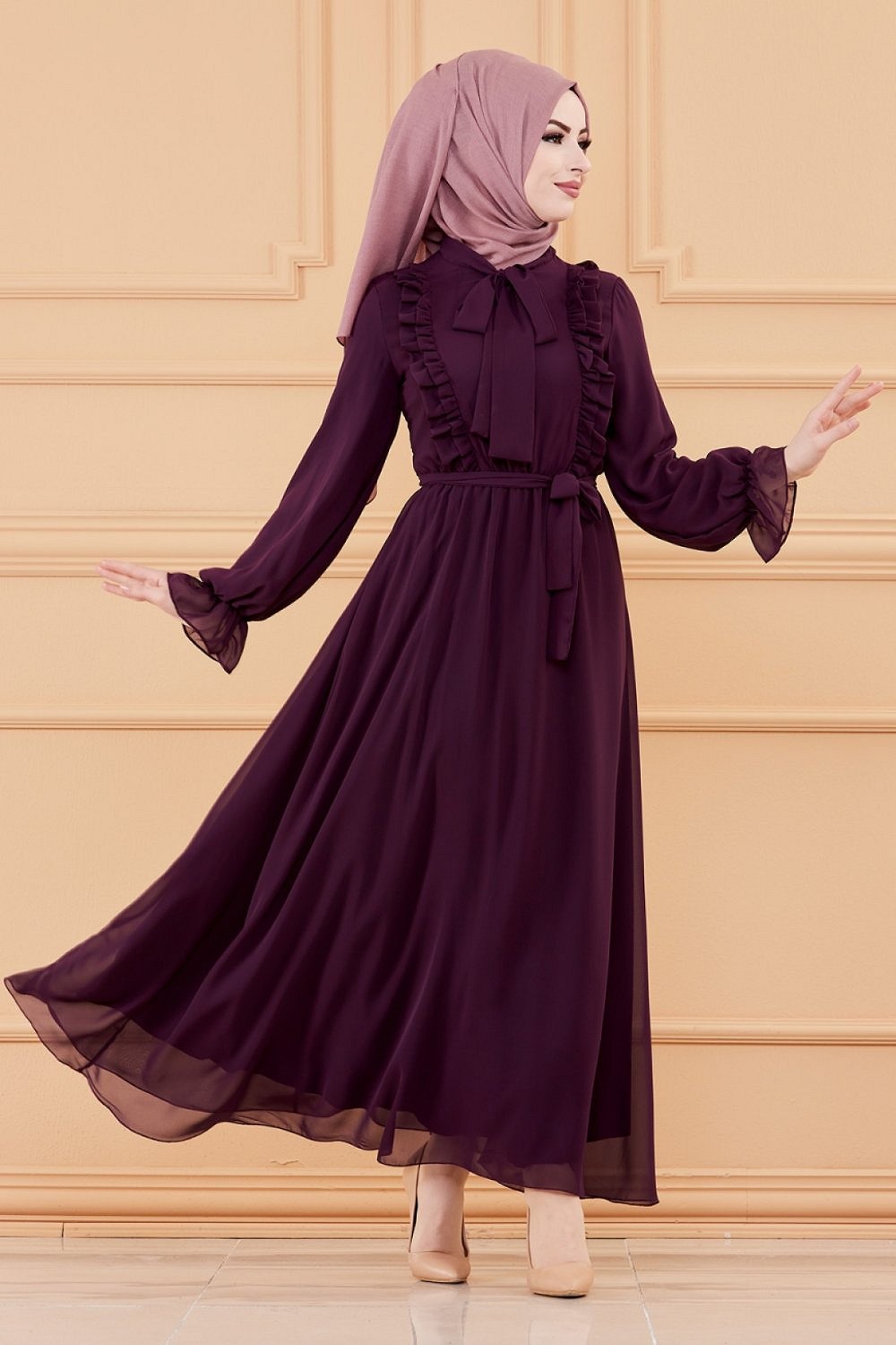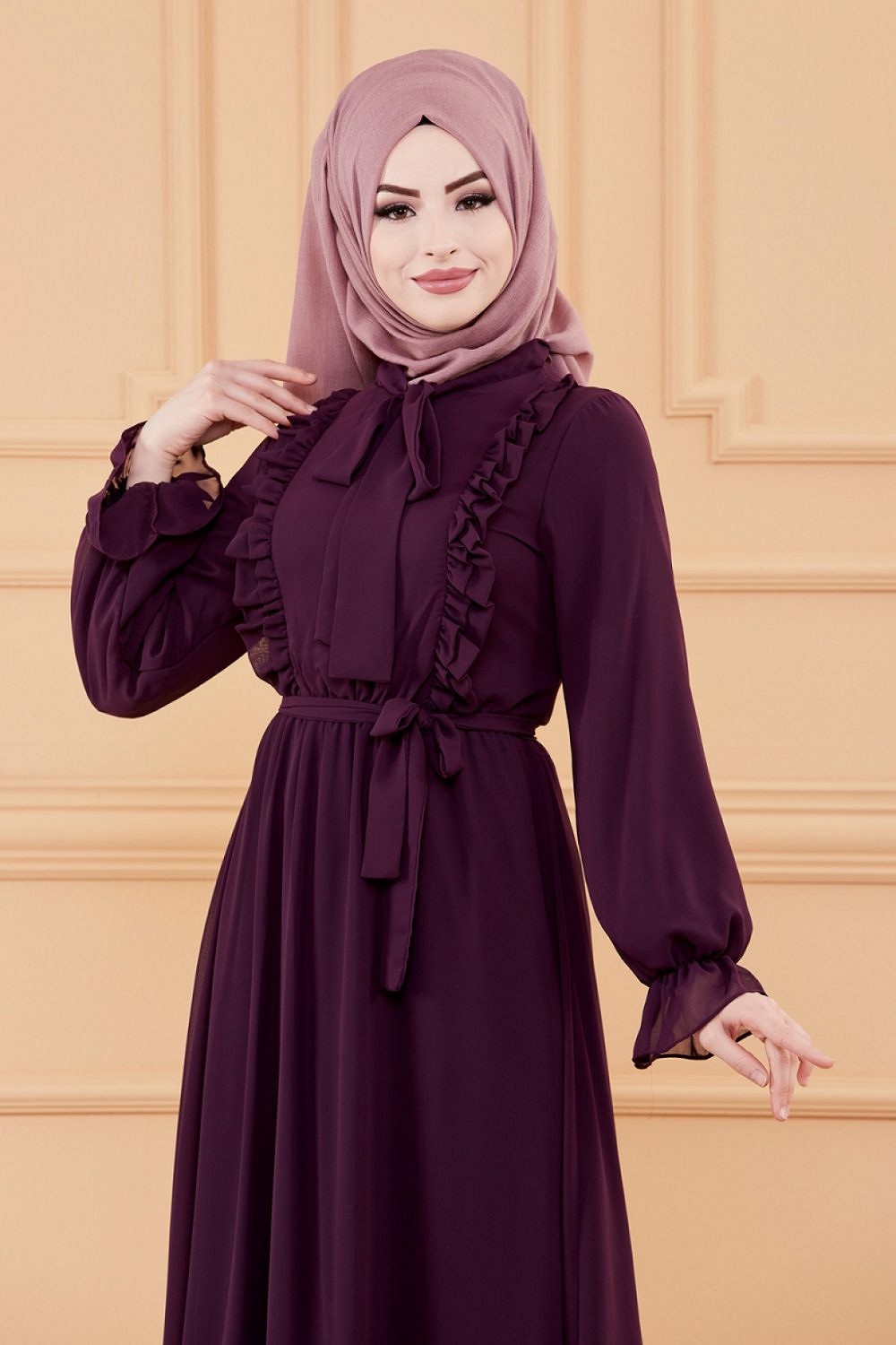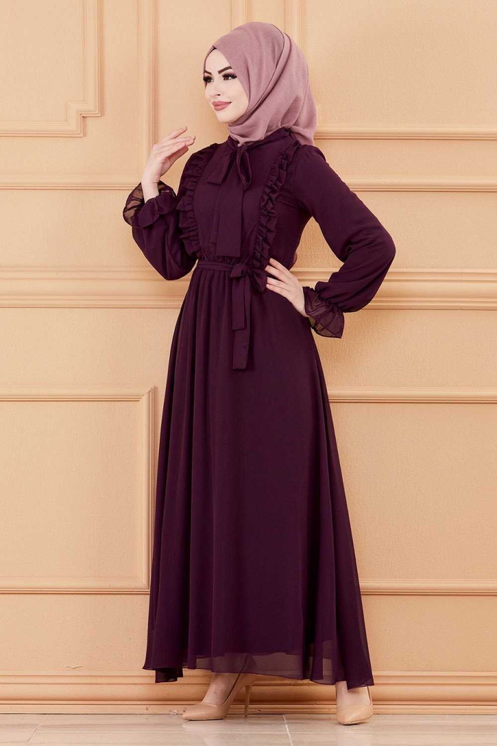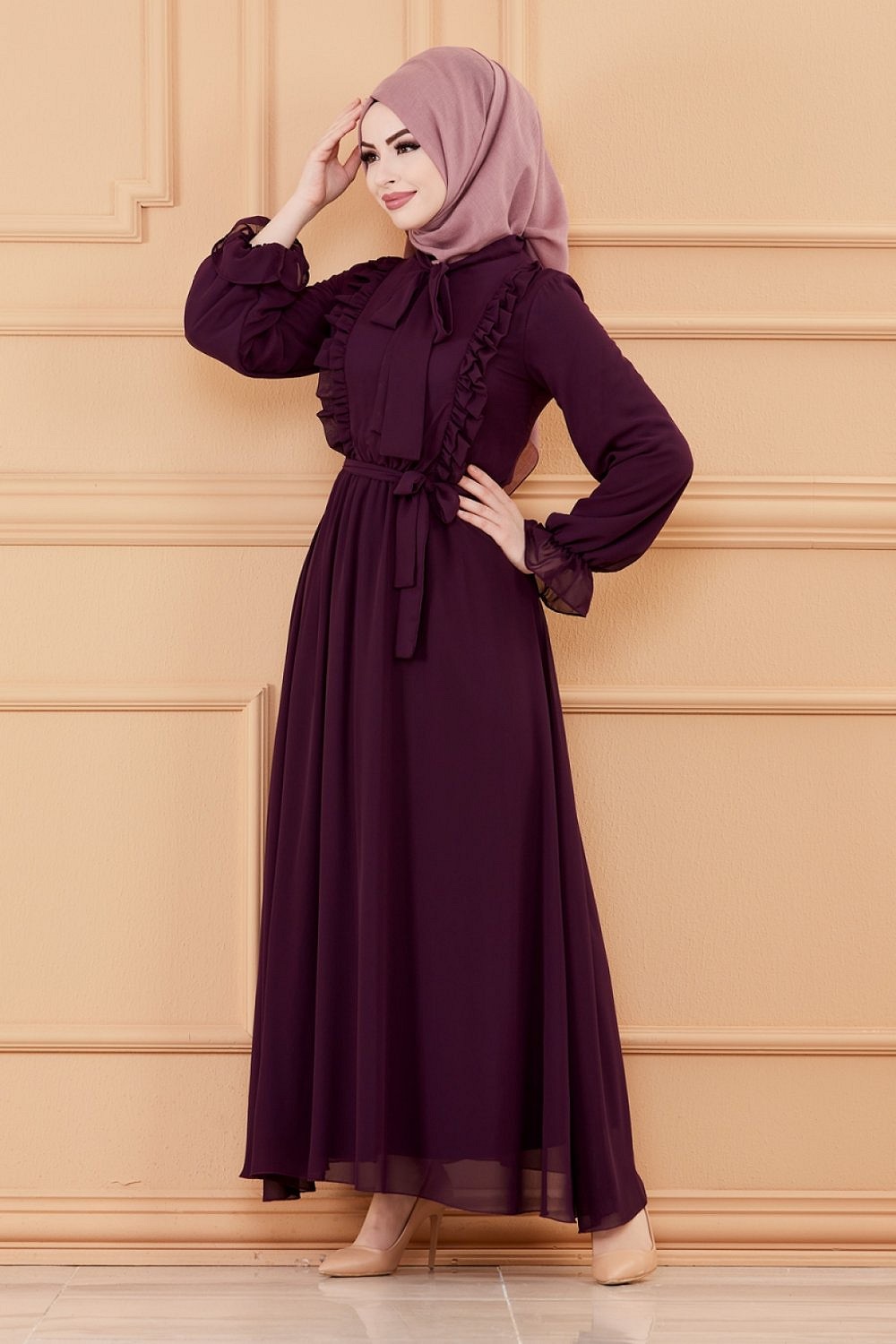 Robe de soirée chic pour femme (Tenue style habillé pour hijab) - Couleur prune Vetement & Accessoire