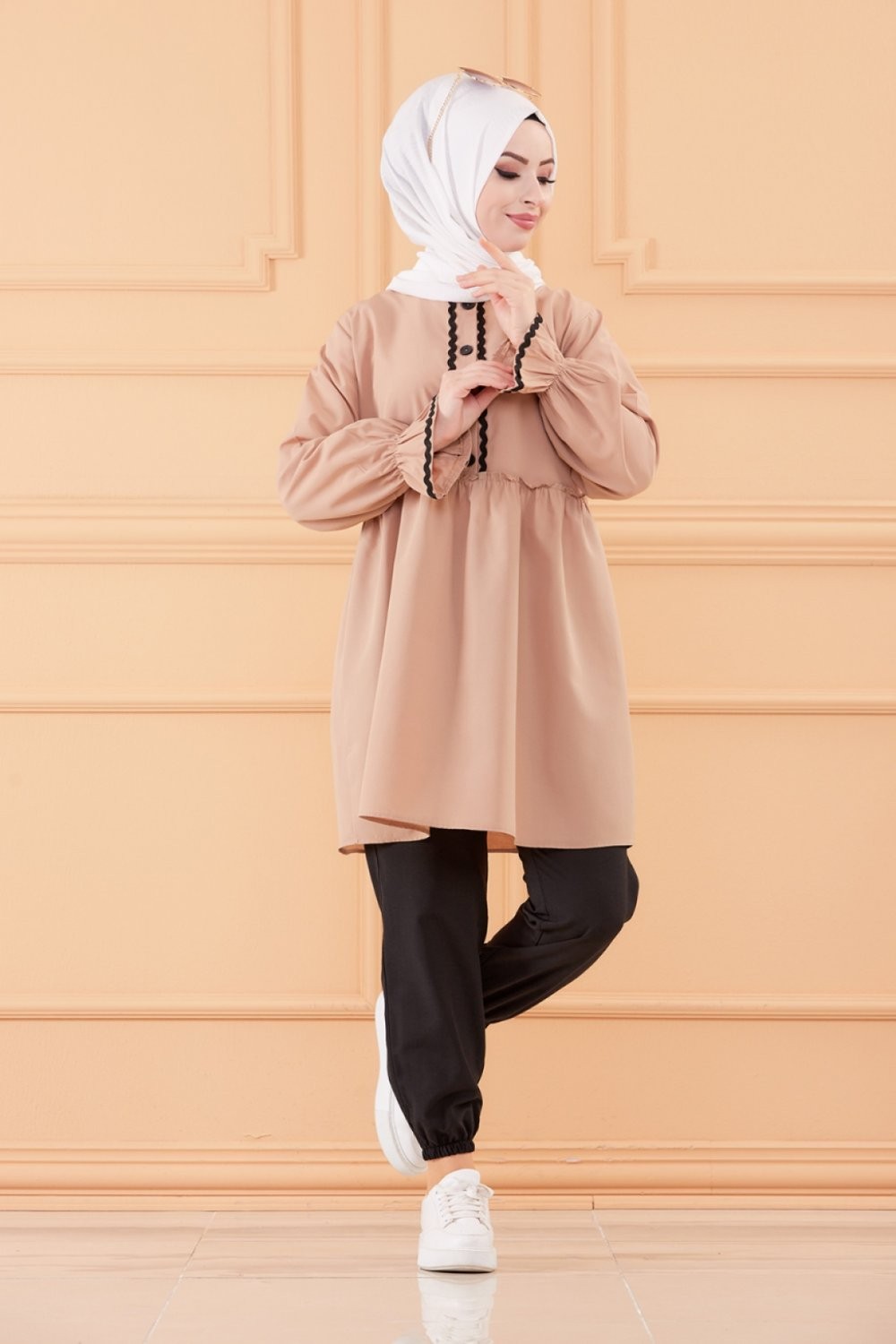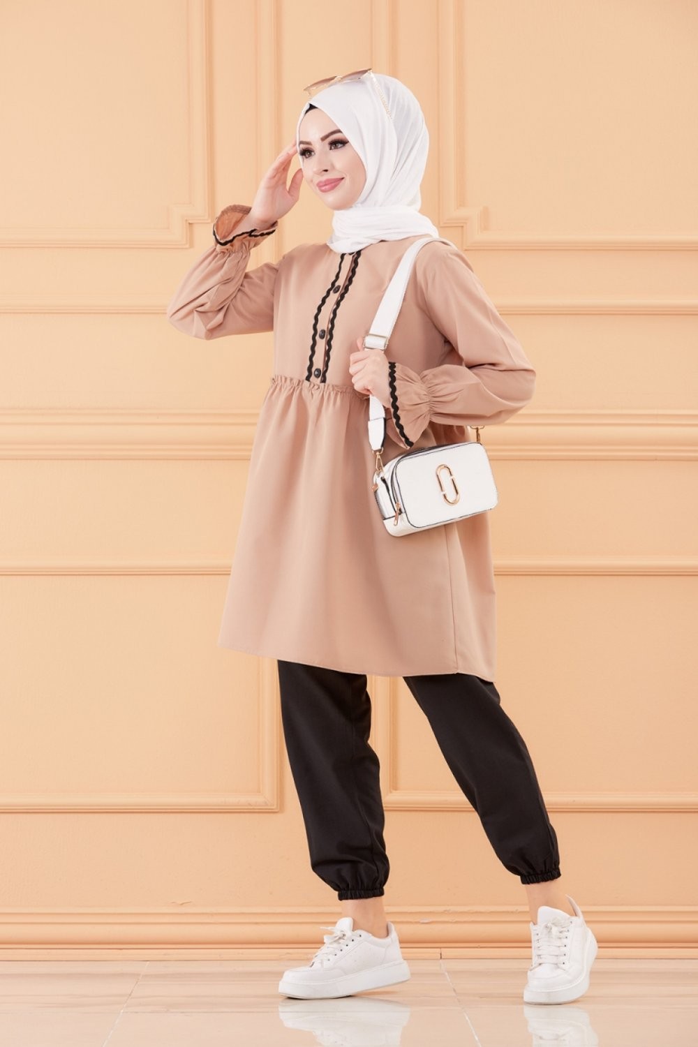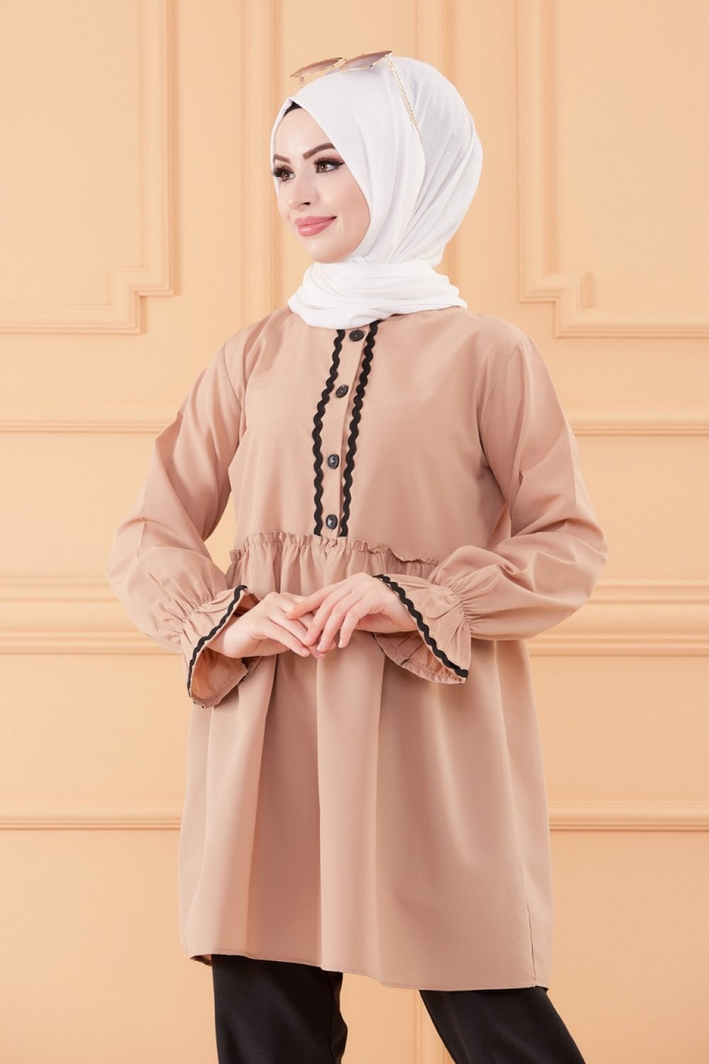 Chemise longe pour femme (Vêtement pour hidjab nouveauté 2025) - Couleur kaki - REF. 38347 (19.90 €)