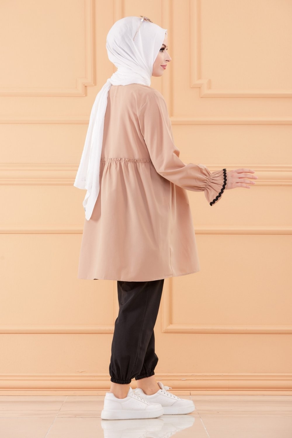 Veste Tunique boutonnée à capuche (Vetement décontracté femme voilée) - Couleur kaki - REF. 32866 (19.90 €)