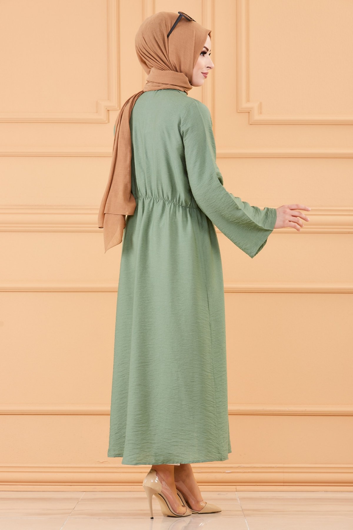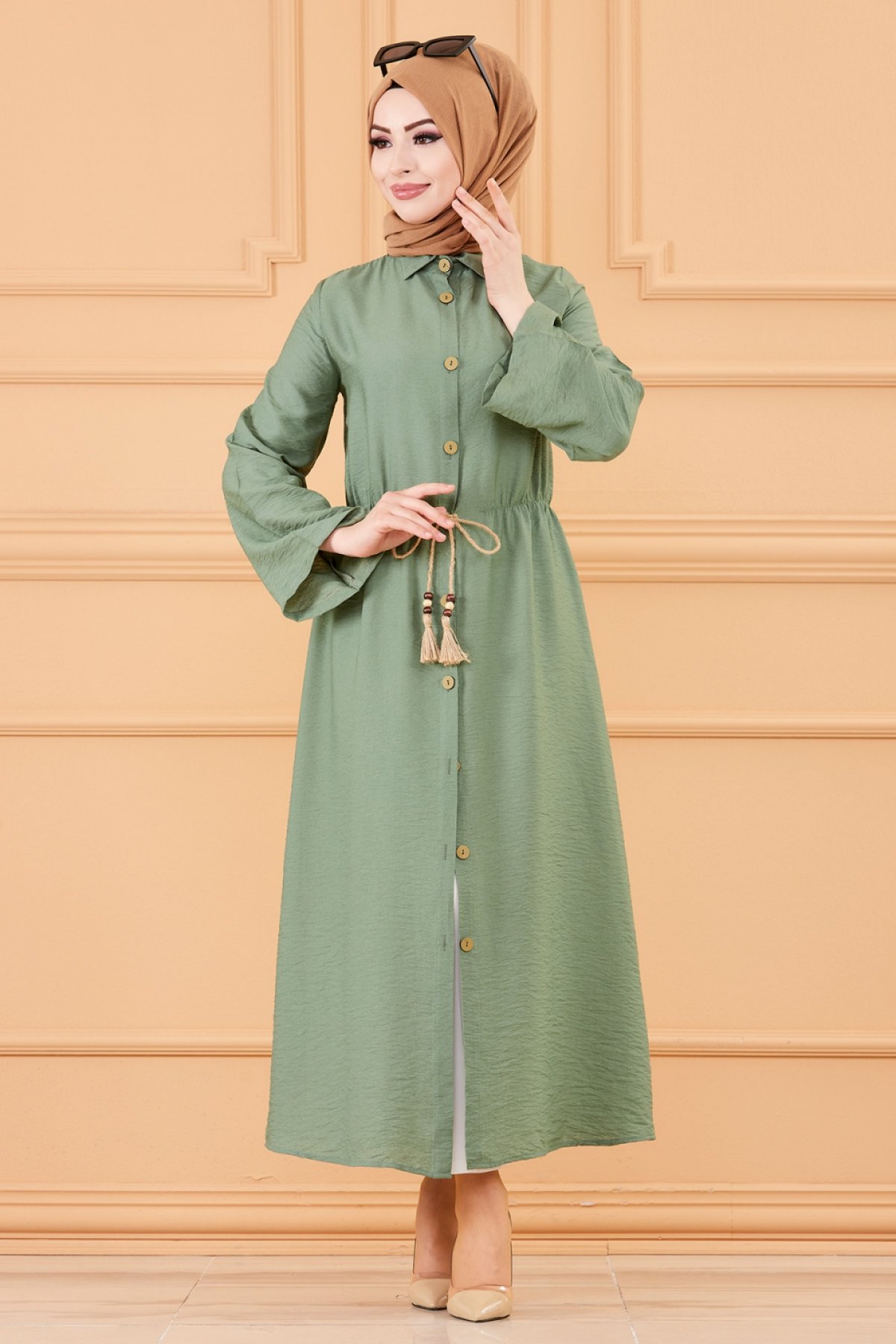 Les photos correspondent à du vert kaki foncé. Vous allez recevoir la même robe en couleur kaki clair.