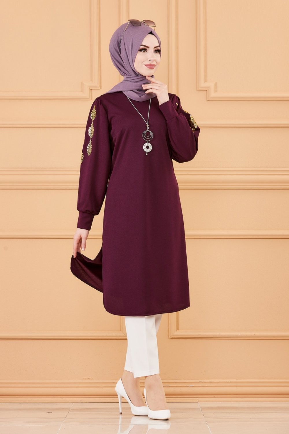 Tunique longue pour femme (Hijab moderne) - Couleur prune Vetement & Accessoire