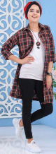 Sur-chemise Tunique à carreaux pour femme (Vêtement Hijab - Saison Automne Hiver) - Couleur Bordeaux - REF. 35213 (26.90 €) - En Promotion à 18.00 €