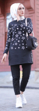 Tunique imprimée avec motifs étoiles (Star Modest Fashion- Mode Musulmane pour femme voilée) - Couleur noir - REF. 32195 (18.00 €)
