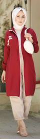 Veste moderne style décontracté avec fermeture zip (Vetement femme voilée) - Couleur Bordeaux - REF. 32848 (24.90 €)