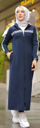Veste longue zippée style sportswear (Robe Sport pour femme voilée) - Couleur bleu marine - REF. 33153 (24.90 €) - En Promotion à 19.00 €