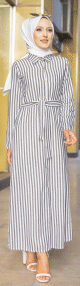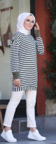 Tunique longue à rayures (Vêtement moderne femme pour voilée) - Couleur Kaki et blanc - REF. 34560 (19.90 €) - En Promotion à 16.90 €