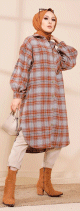 Surchemise longue et ample à carreaux (Modest Fashion) - Couleur brique - REF. 35604 (29.00 €) - En Promotion à 21.90 €