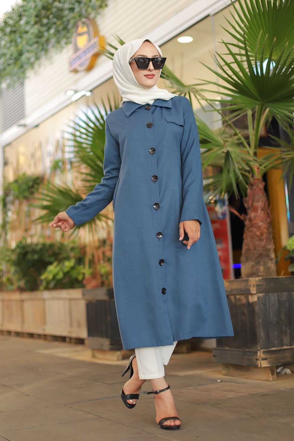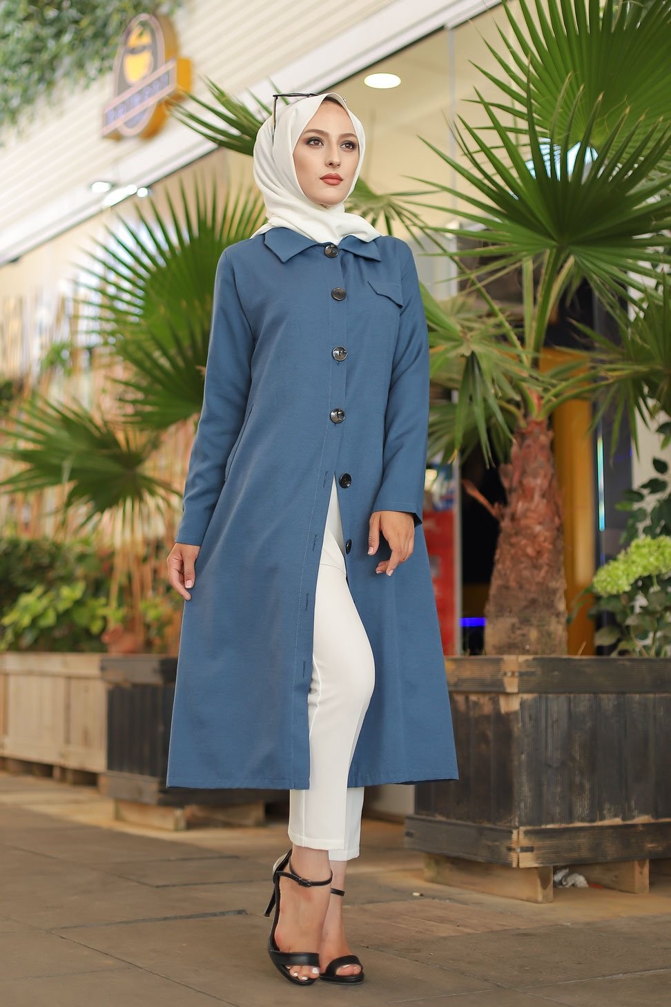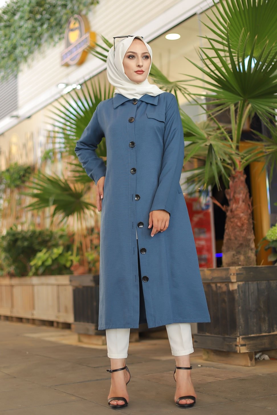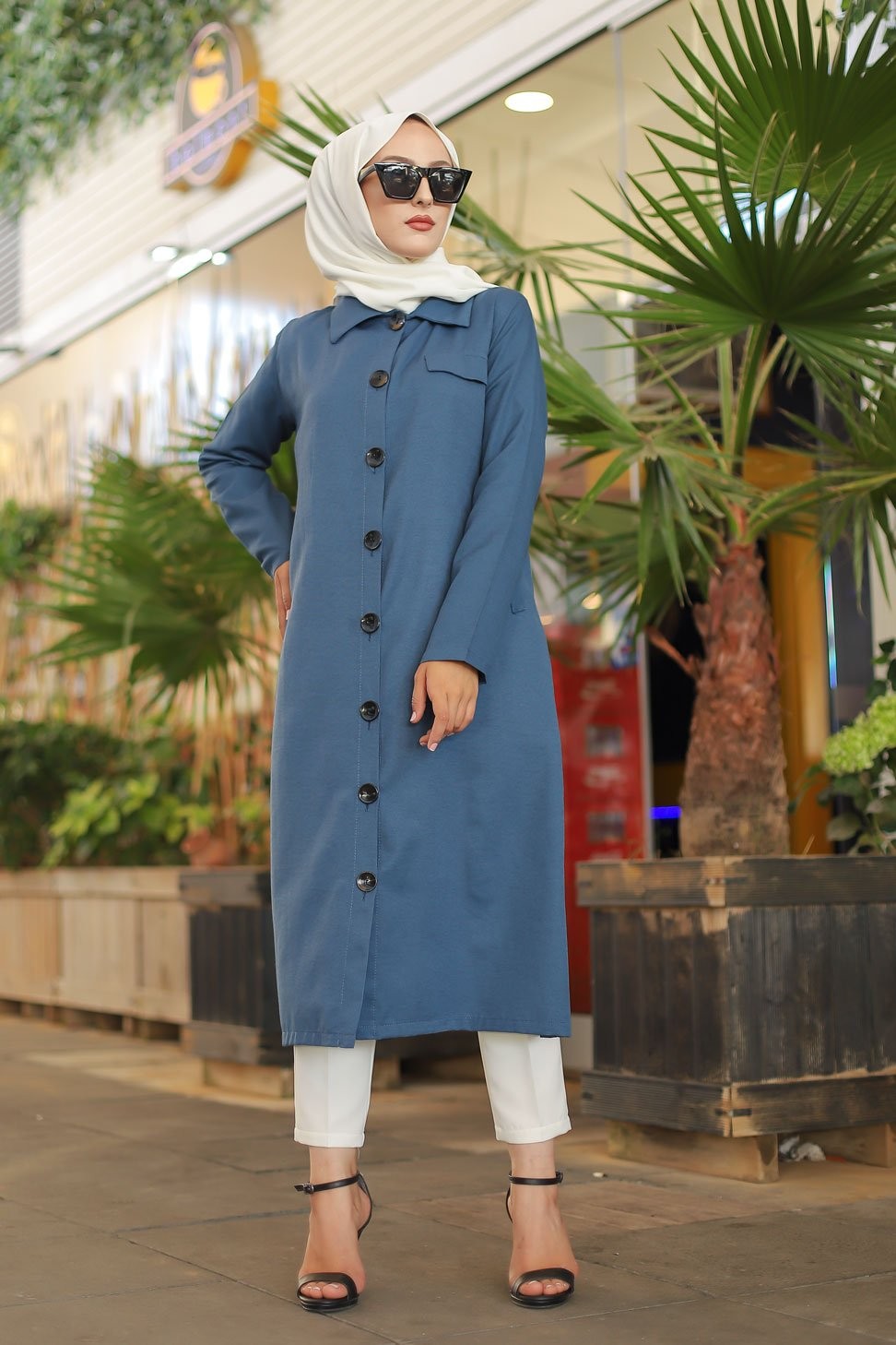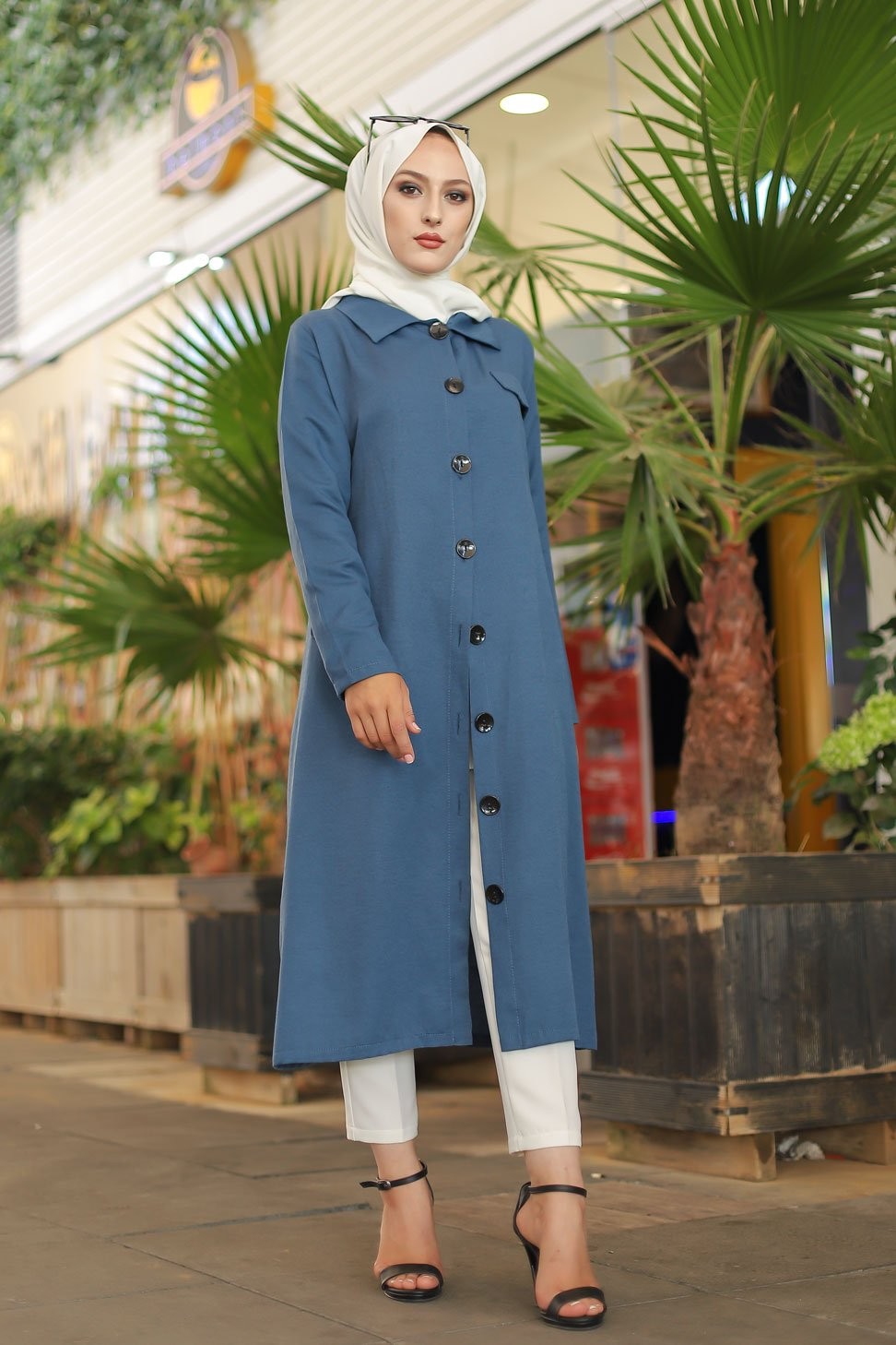 Trench femme - Veste longue (Vetement hijab pour musulmane) - Couleur bleu Vetement & Accessoire