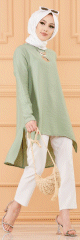 Veste longue pour femme - style chemise (Vetement femme voilée) - Couleur vert clair - REF. 32901 (29.90 €) - En Promotion à 24.90 €