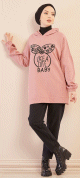 Tunique avec capuche imprimé "Like a cute baby" (Style Moderne) - Couleur rose poudré - REF. 37723 (26.00 €) - En Promotion à 19.90 €