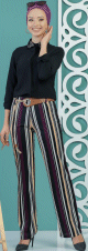 Pantalon multicolore avec ceinture pour femme - Rayures de couleur noires, beiges et violettes - REF. 30290 (25.00 €) - En Promotion à 19.90 €