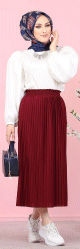 Jupe plissée pour femme (Vetement pas cher et Mode Hijab) - Couleur bordeaux - REF. 32287 (12.00 €) - En Promotion à 9.90 €