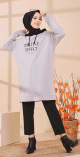 Tunique type sweat long à capuche (Vêtement de tous les jours pour Hijab) - Couleur gris clair