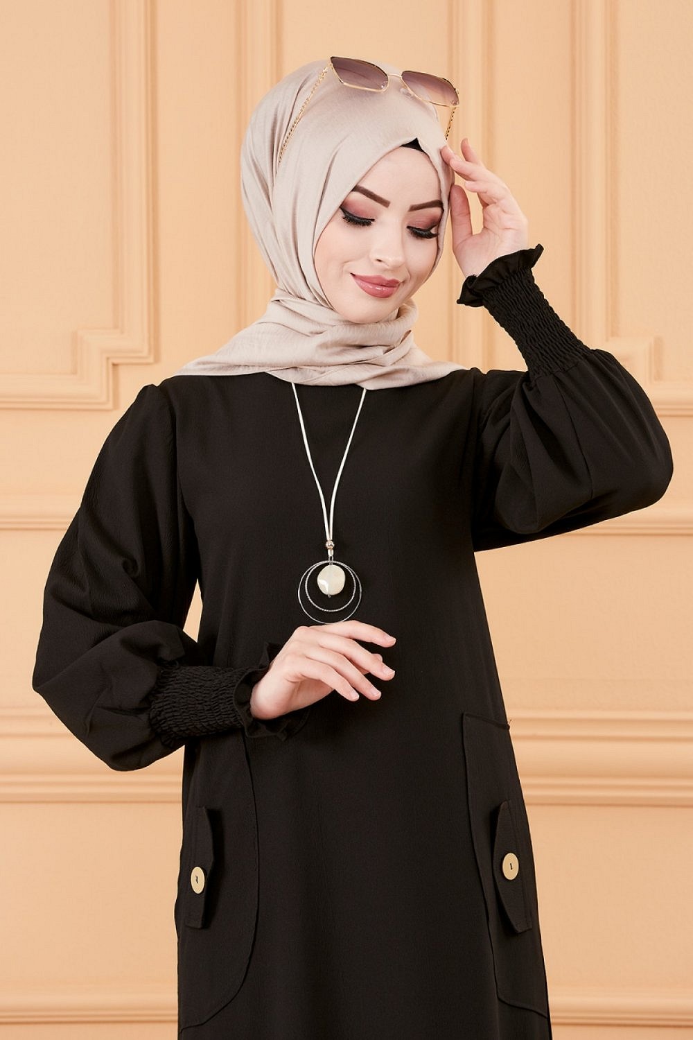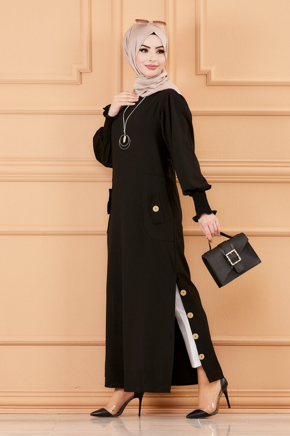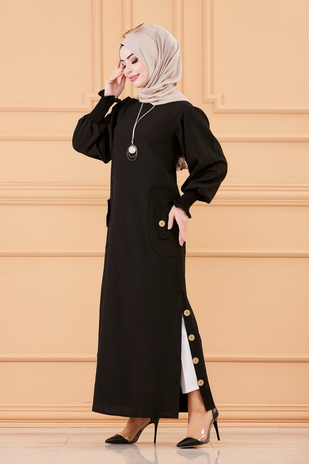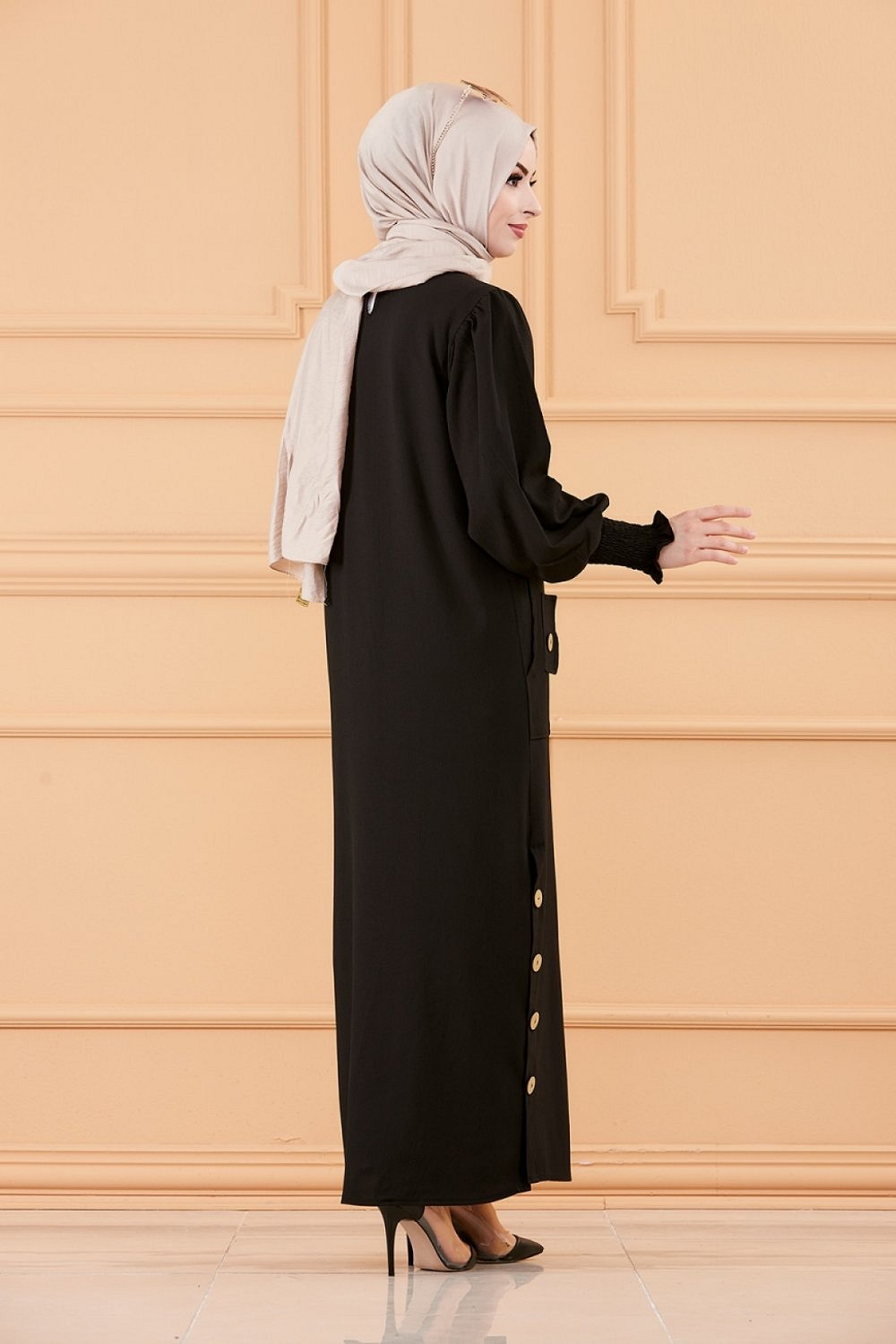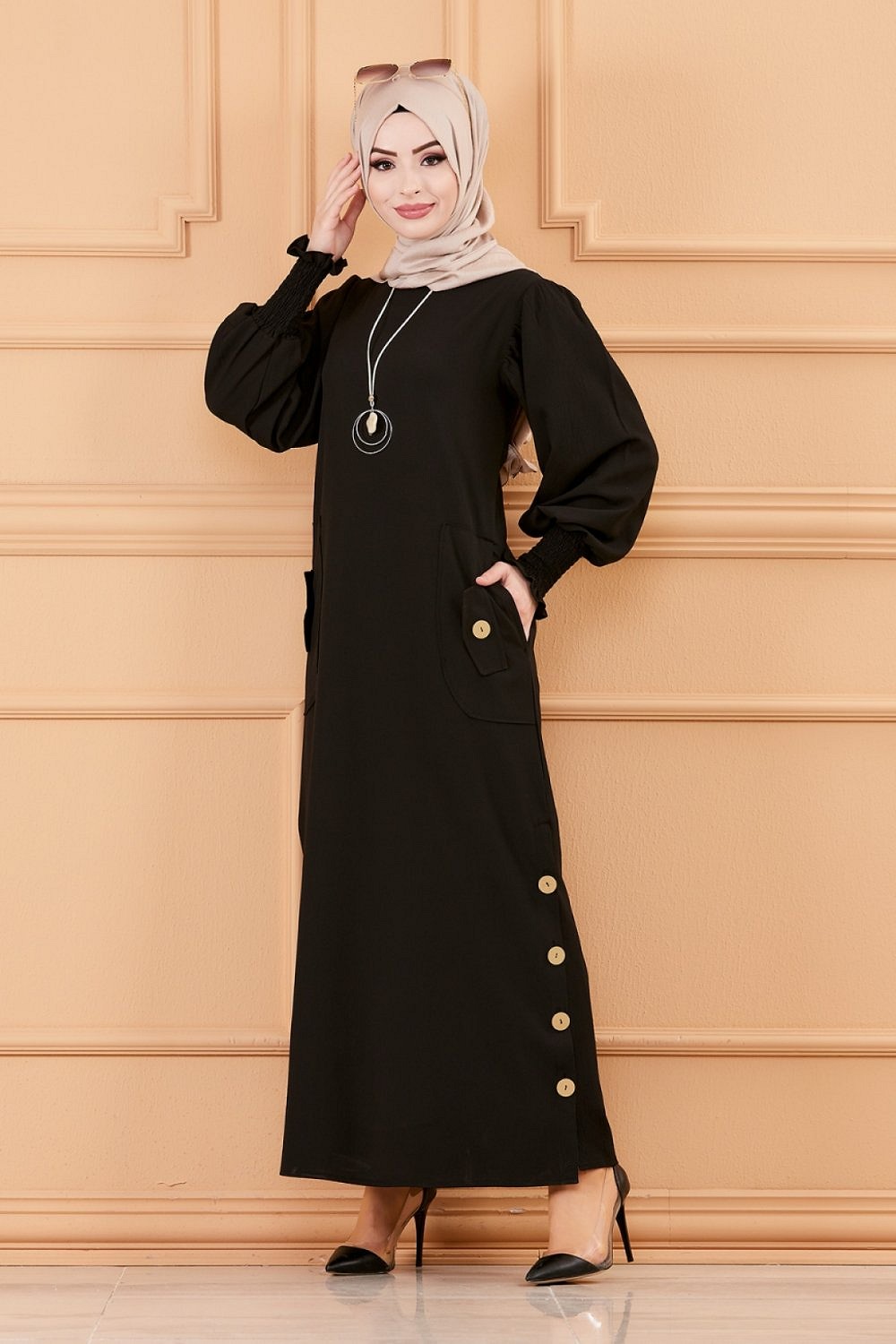 Robe chic avec boutons (Vetement style habille hijab - Boutique en France) - Couleur noir