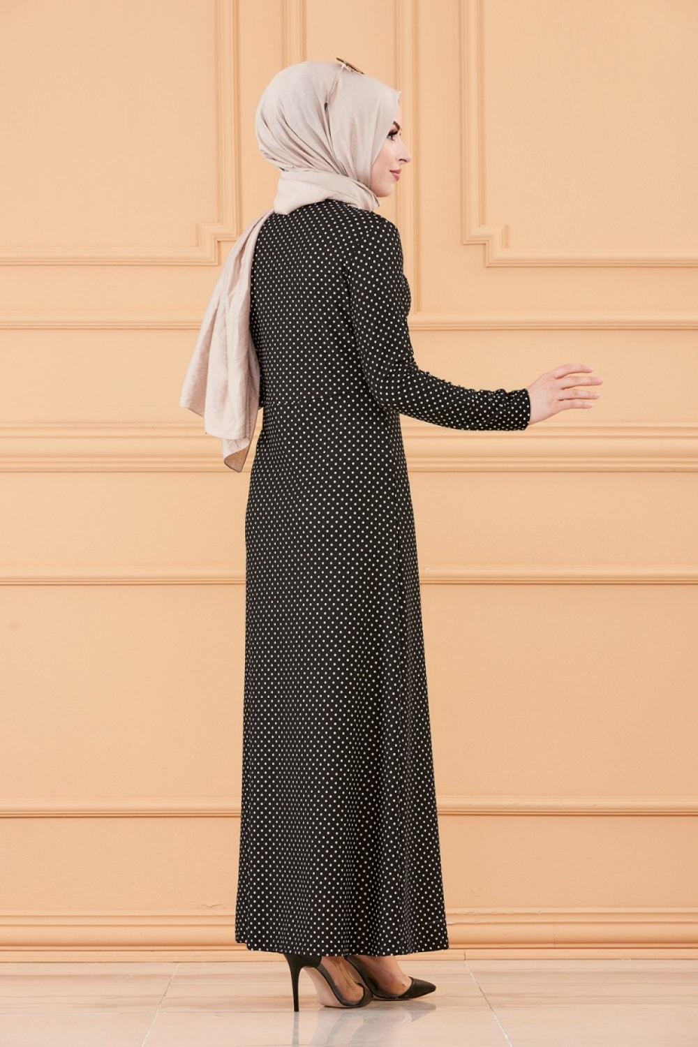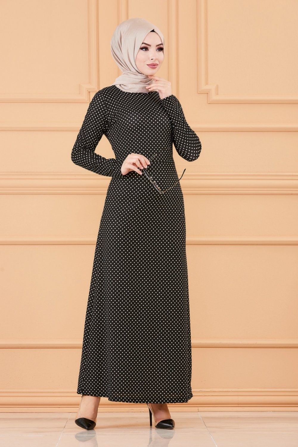 Robe longue à pois pour femme (Vêtement hijab tendance 2025) - Couleur noir Vetement & Accessoire