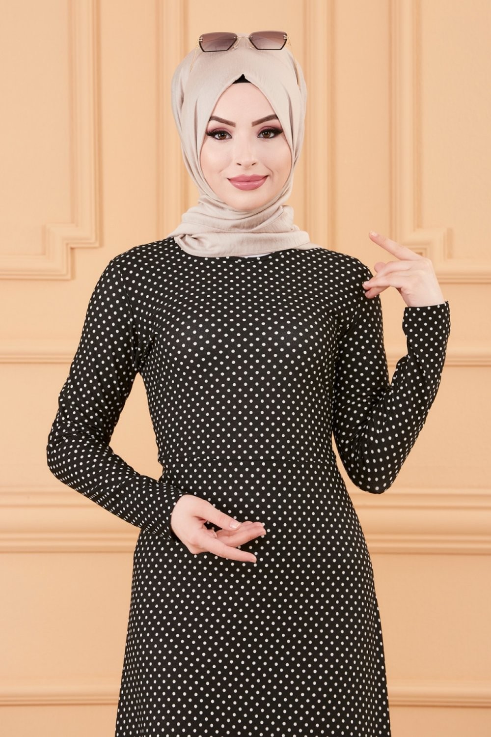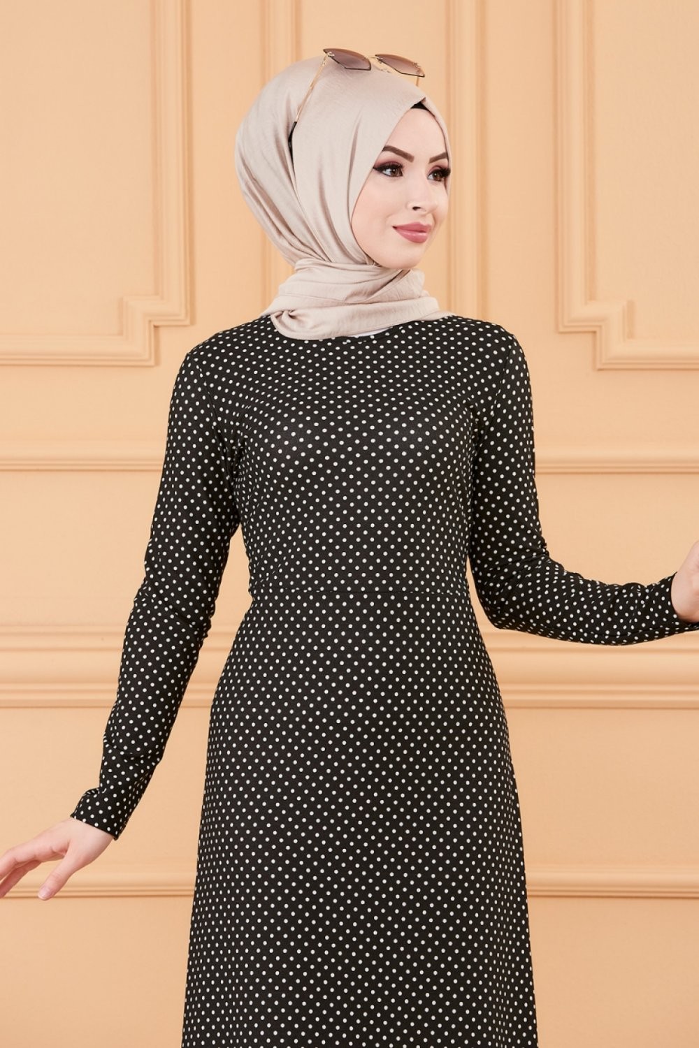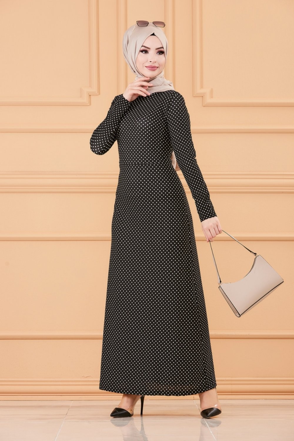 Robe longue a pois pour femme (Vetement hijab tendance 2025) - Couleur noir