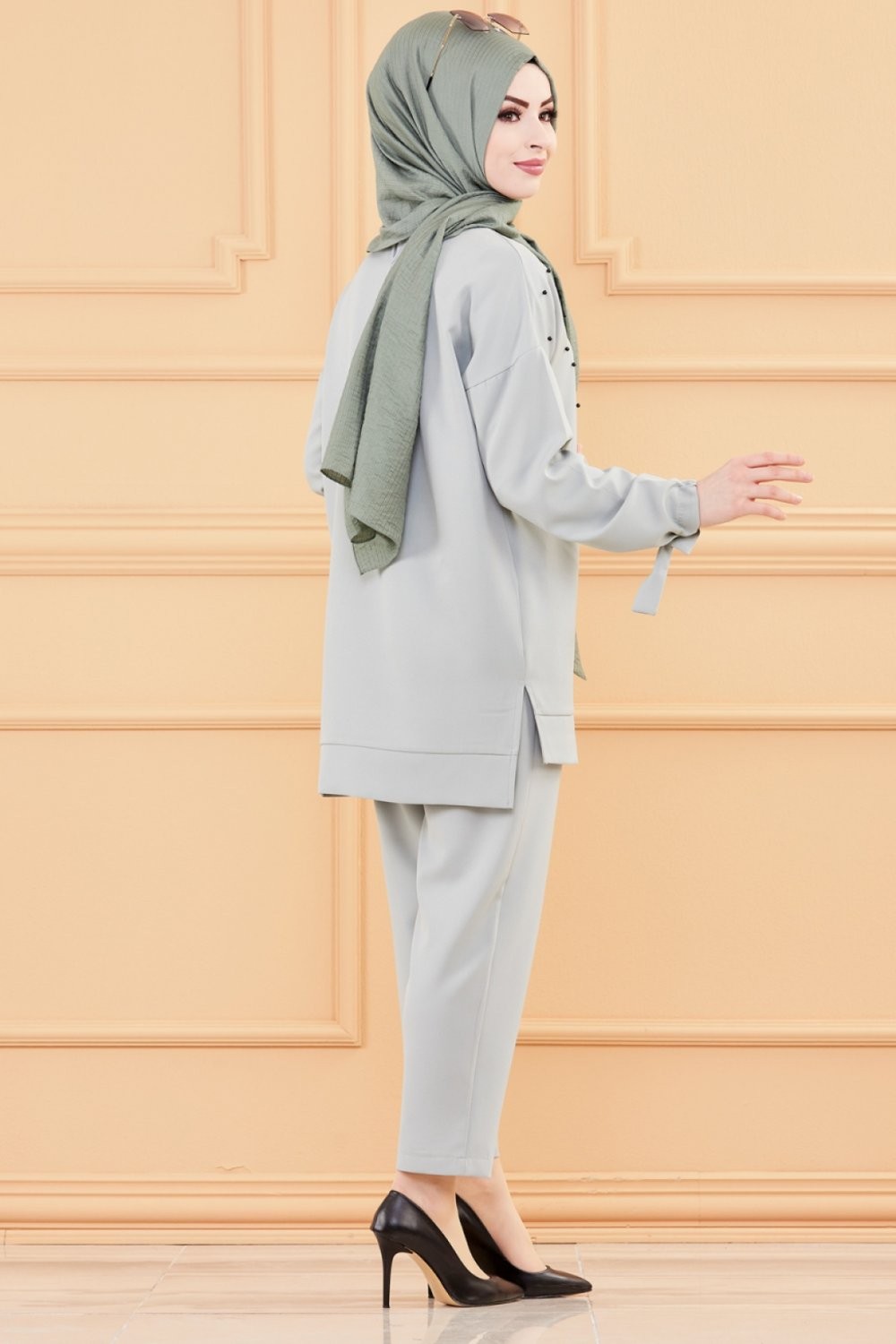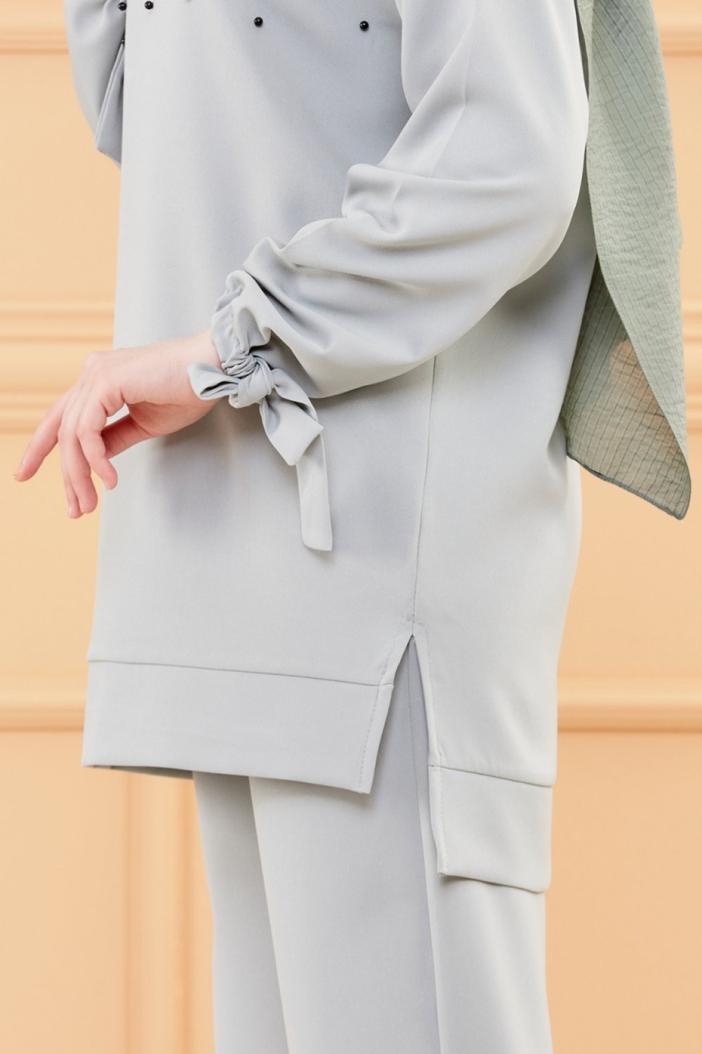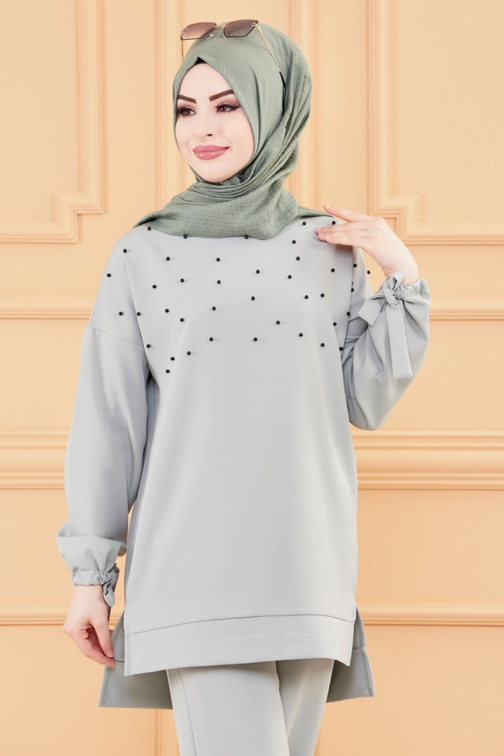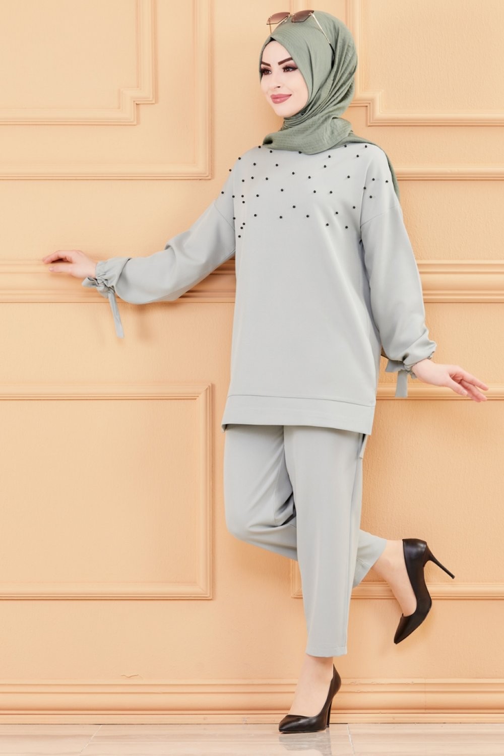 Ensemble tunique perlée et pantalon pour femme (Tenue Hijab Modest Fashion) - Couleur menthe Vetement & Accessoire