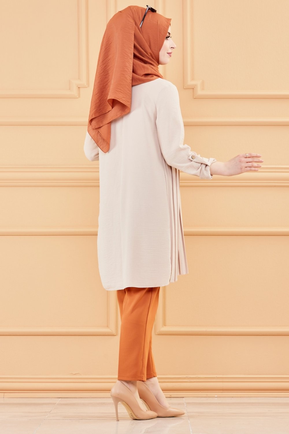 Tunique plissée style habillé pour femme (Vêtement élégant pour hijab) - Couleur beige Vetement & Accessoire