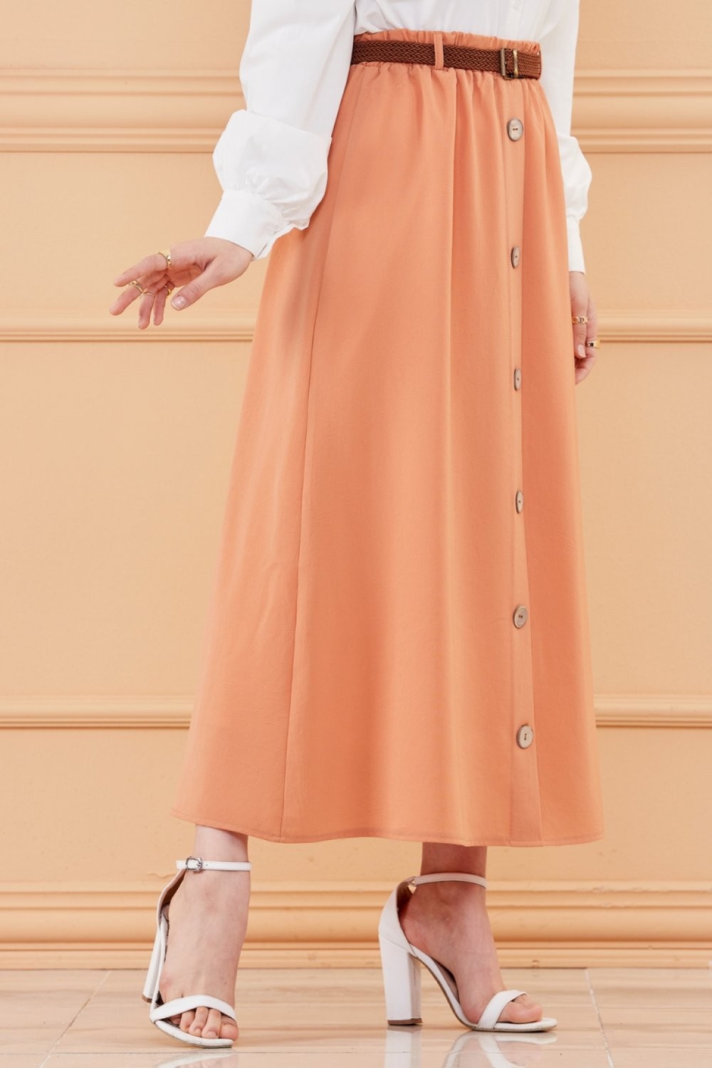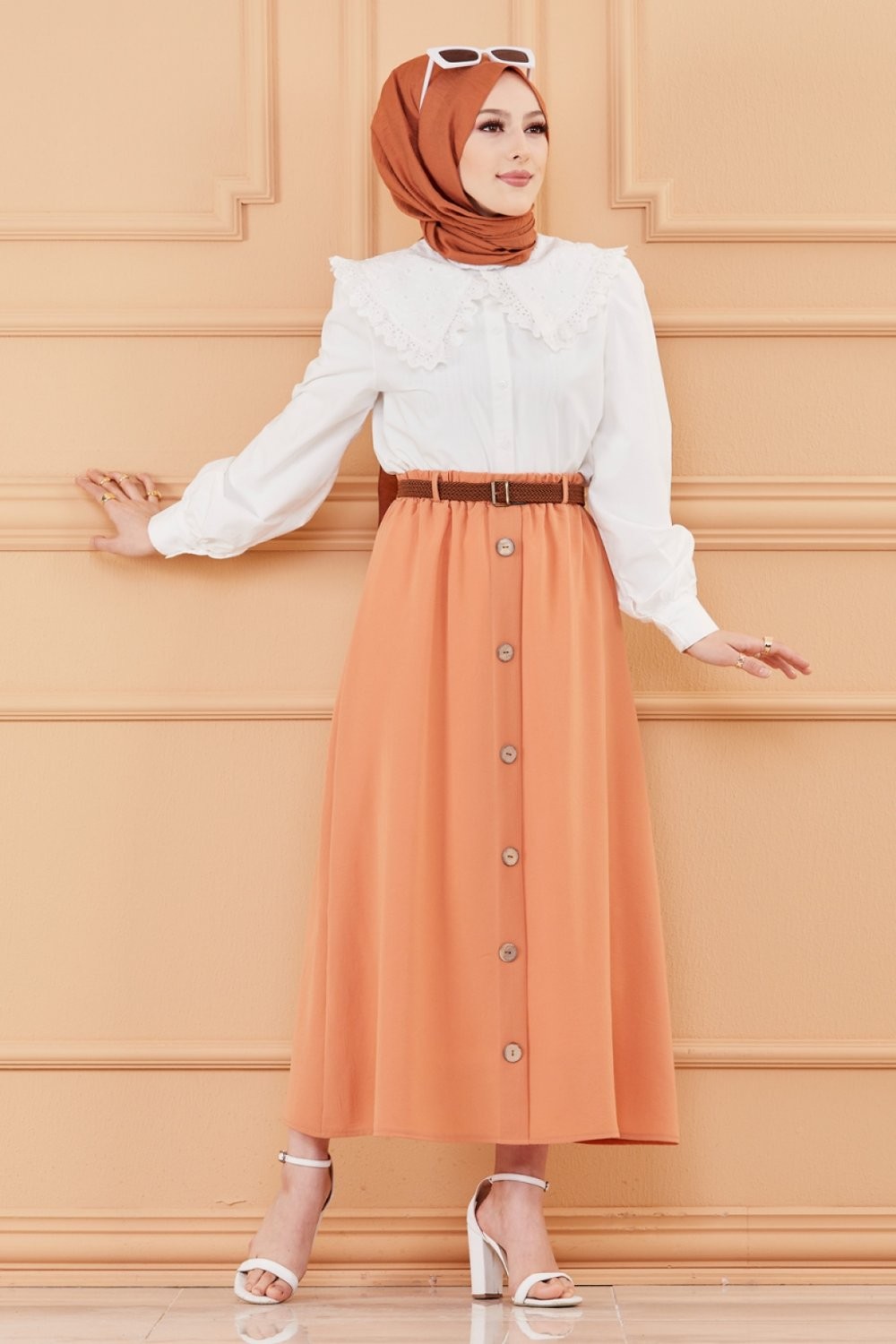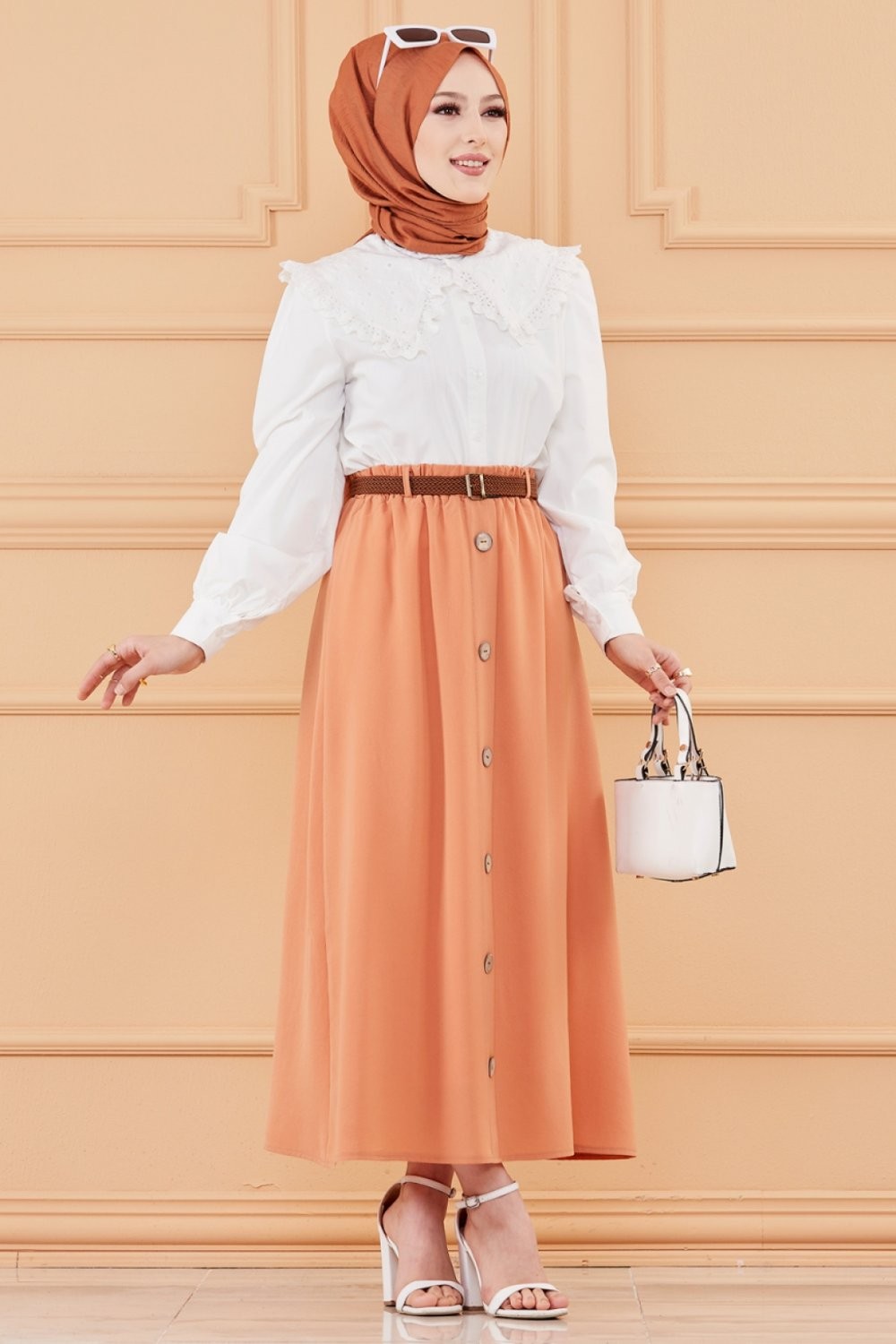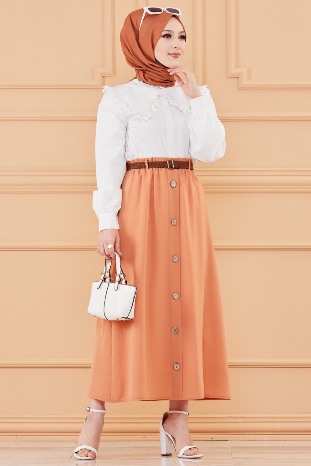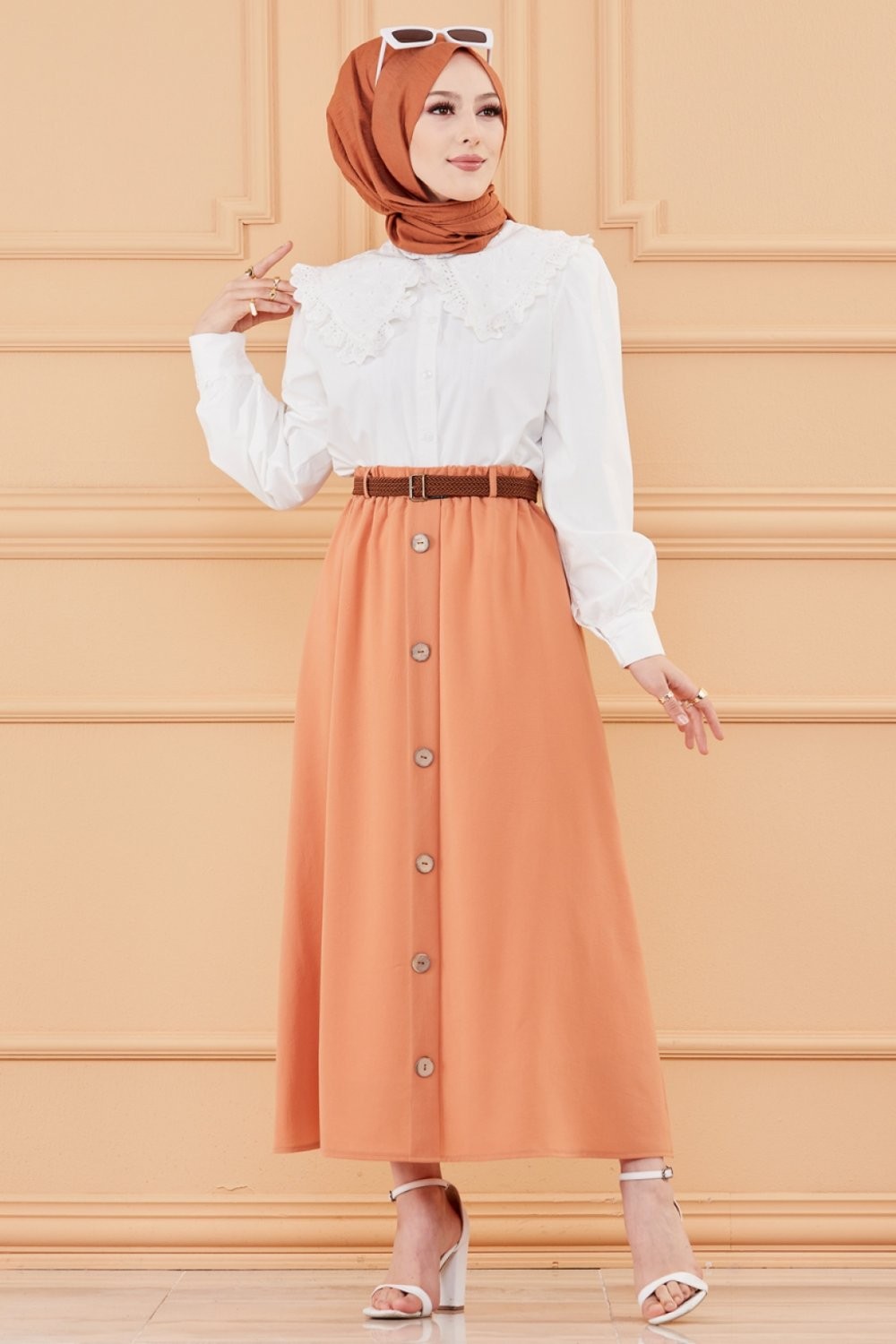 Jupe longue decoree de boutons (Vetement hijab) - Couleur tabac