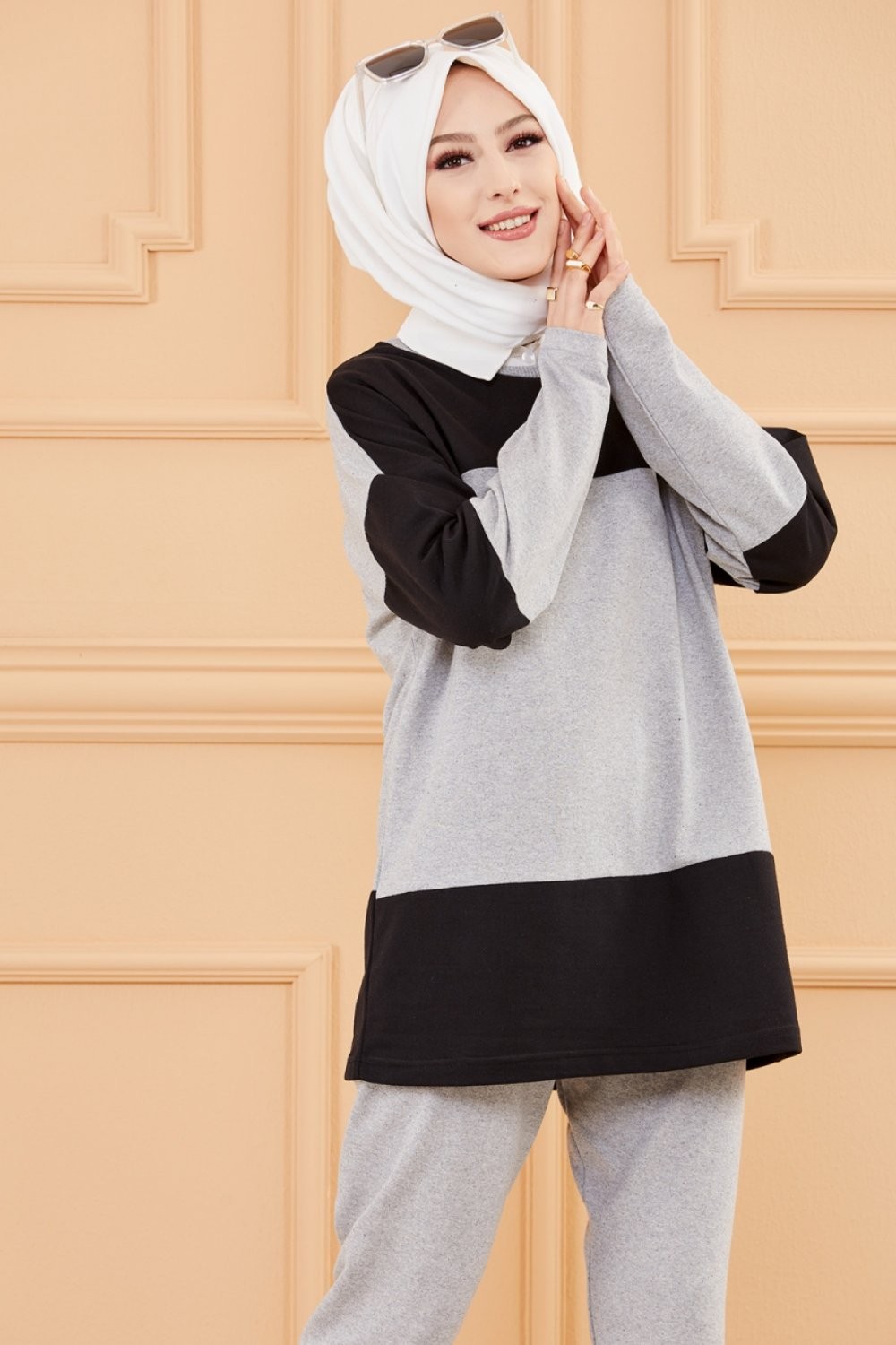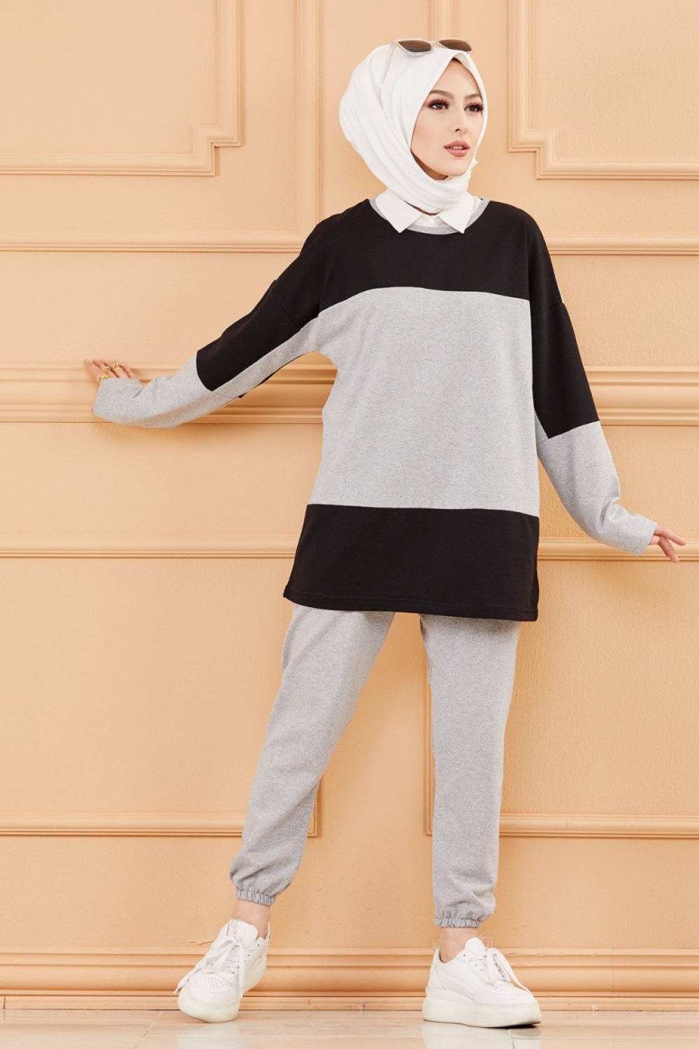 Ensemble moderne bicolore pour femme (Vêtement hijab style sport) - Couleur noir et gris - REF. 35921 (29.00 €)