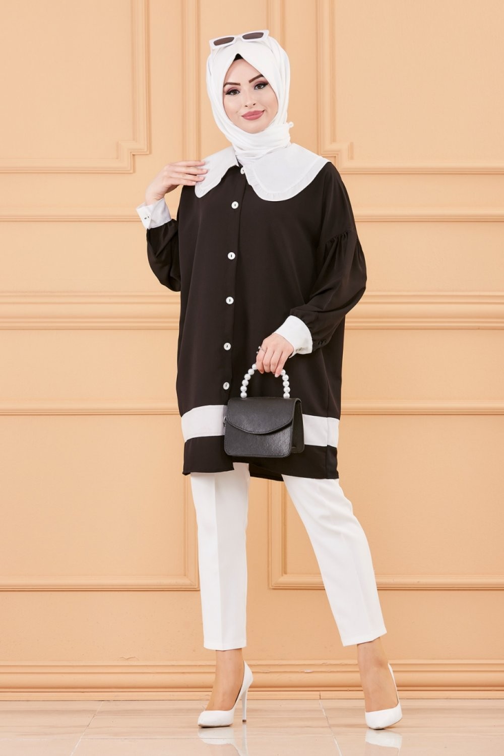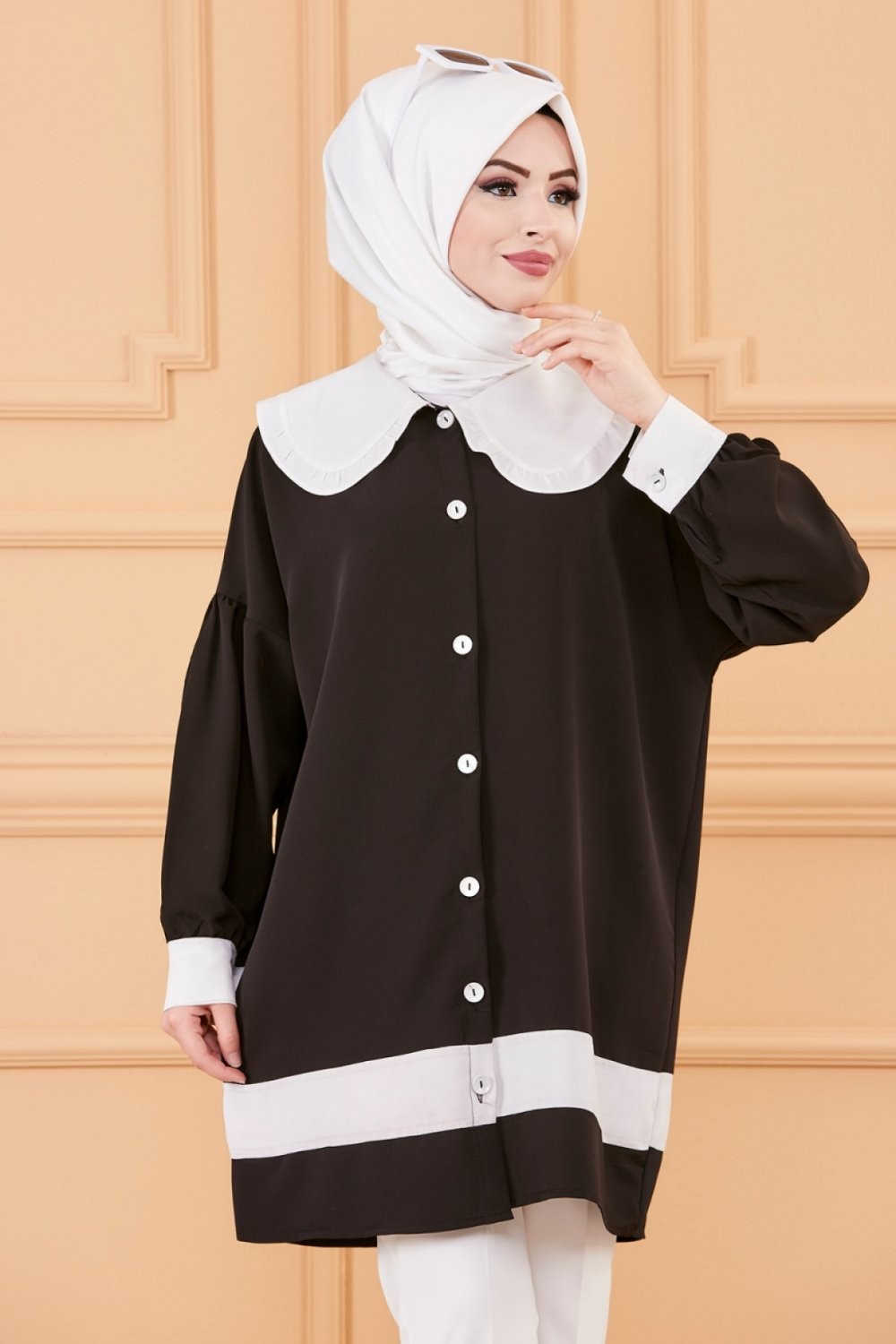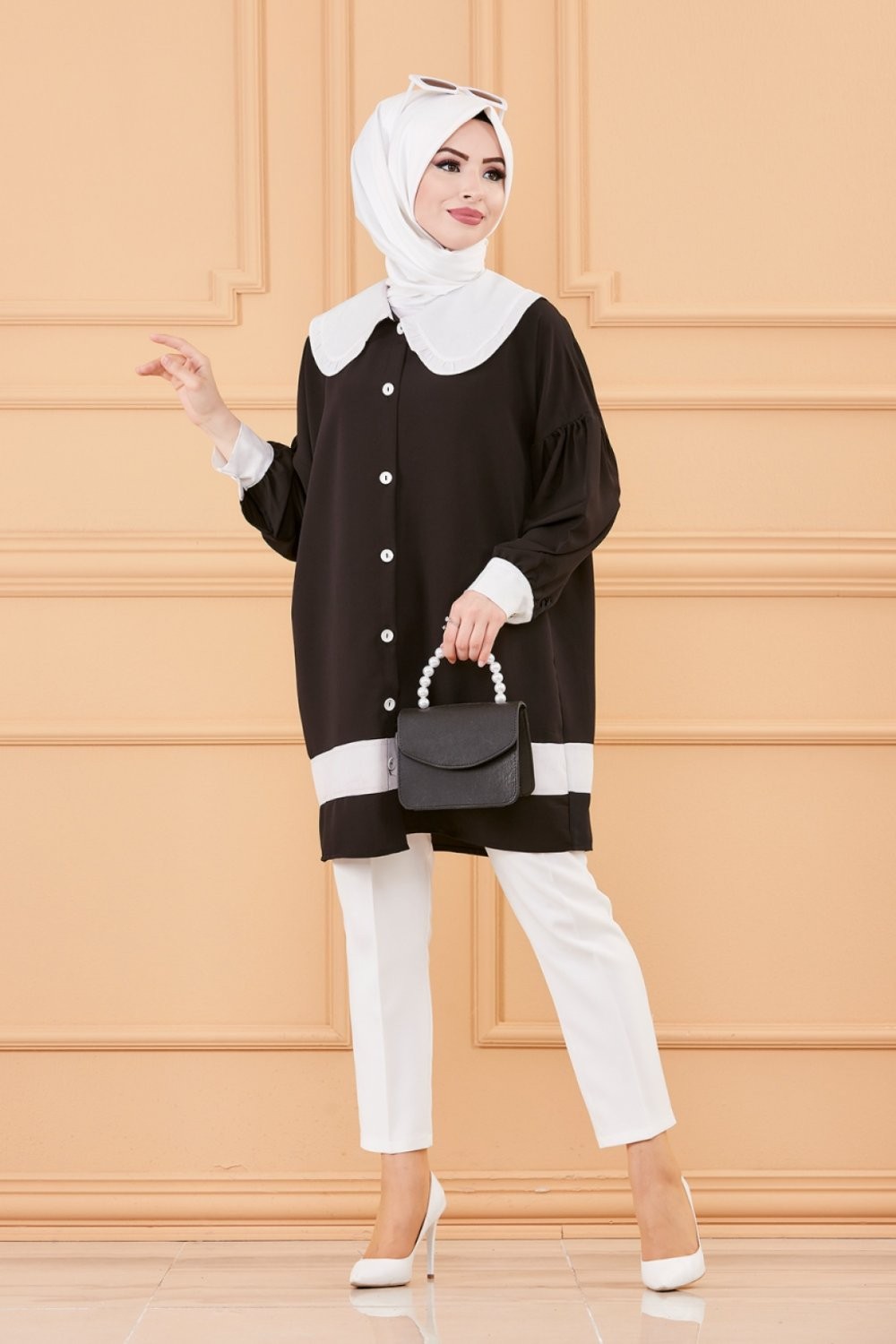 Tunique style habillé (Vêtement chic pour femme voilée) - Couleur noir et blanc Vetement & Accessoire