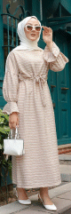 Robe longue à rayures avec ceinture pour femme voilée - Couleur beige - REF. 33243 (29.90 €) - En Promotion à 24.90 €