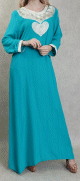 Robe longue style oriental avec borderie originale sous forme de coeur pour femme - Couleur émeraude - REF. 37678 (24.90 €)