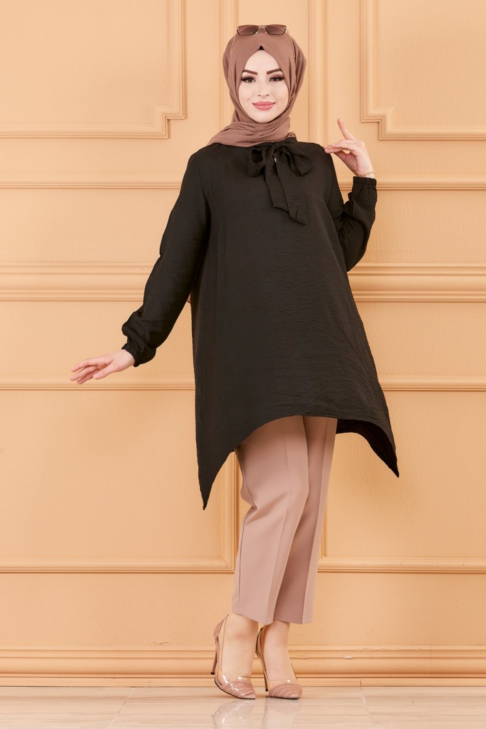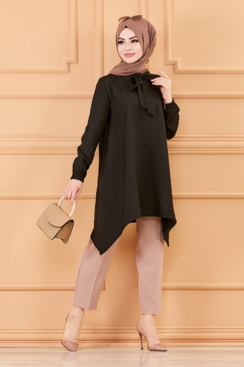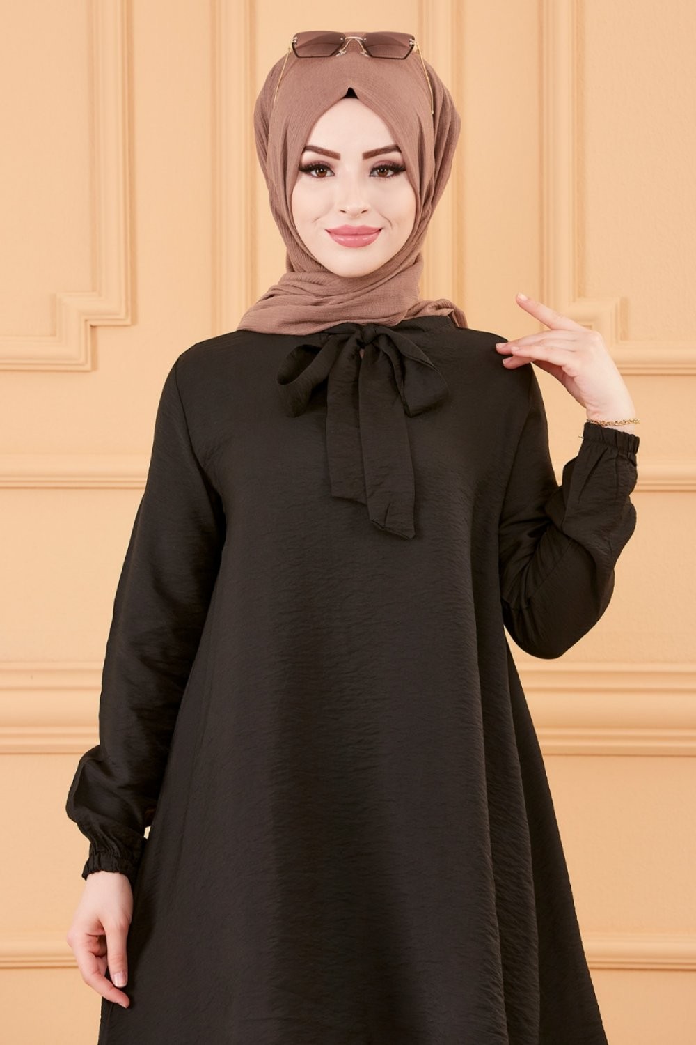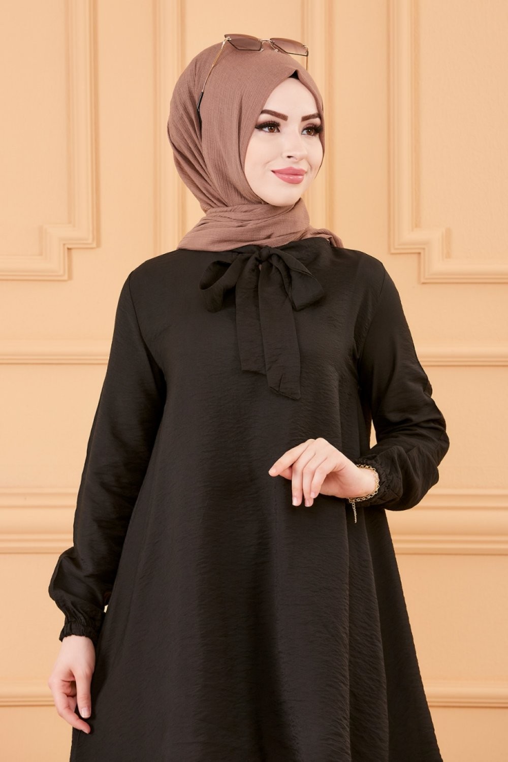 Tunique style habillé pour femme (Vêtement Hijab - Boutique Mode Musulmane en ligne) - Couleur noir Vetement & Accessoire