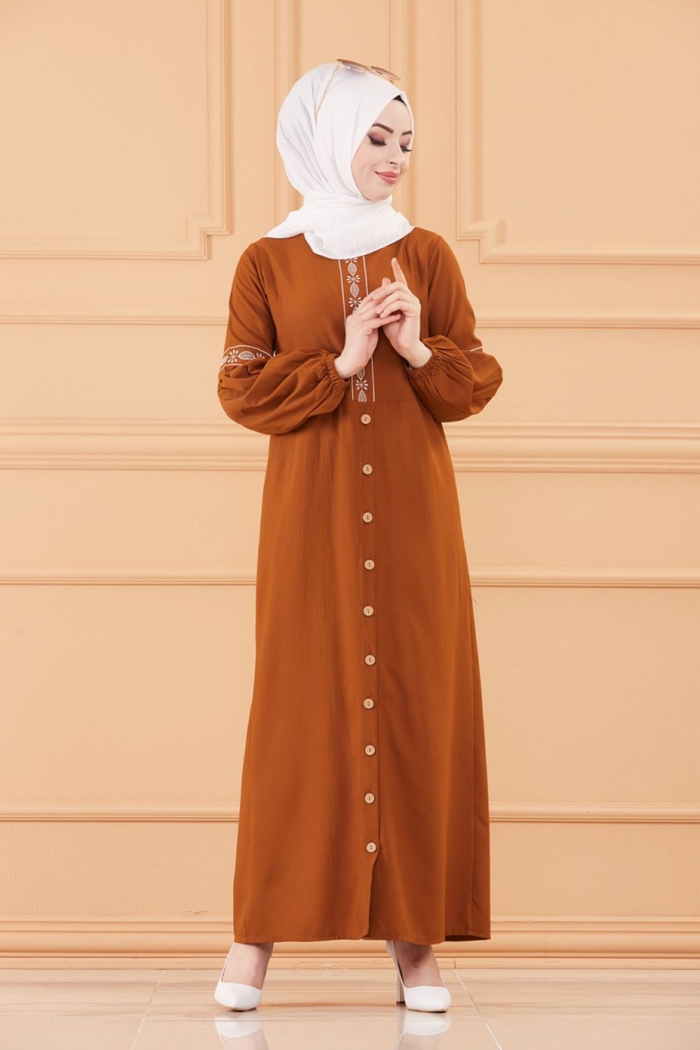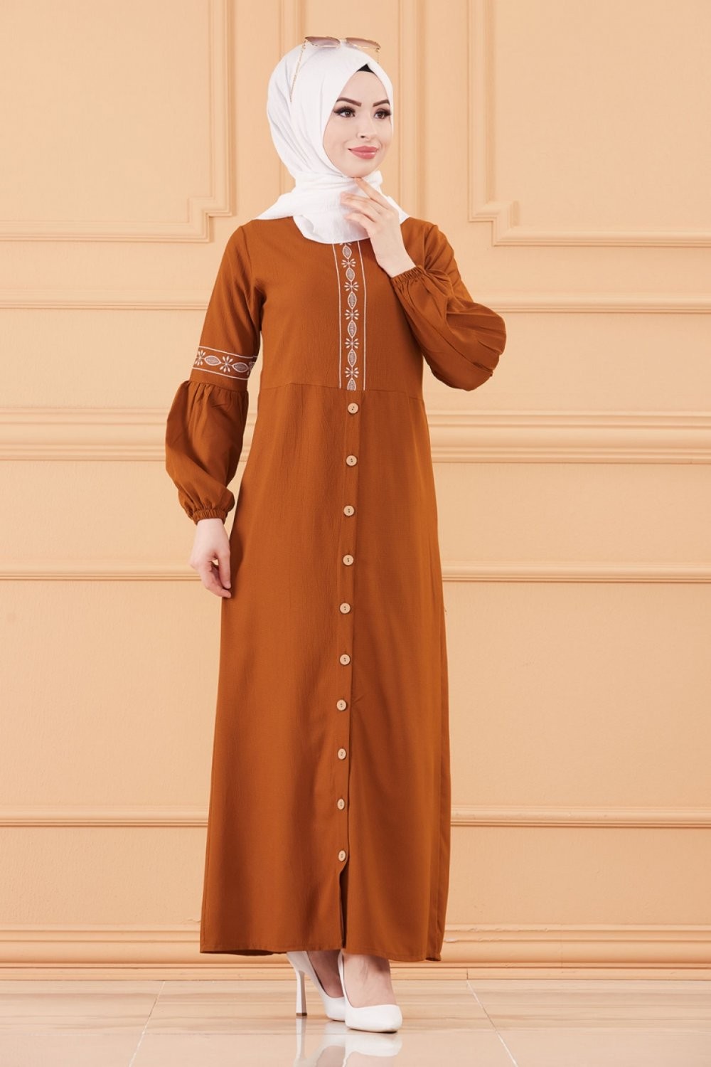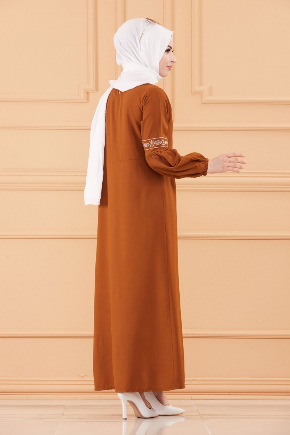 Robe longue brodée pour femme musulmane (Tenue Hijab style habillé) - Couleur tabac Vetement & Accessoire