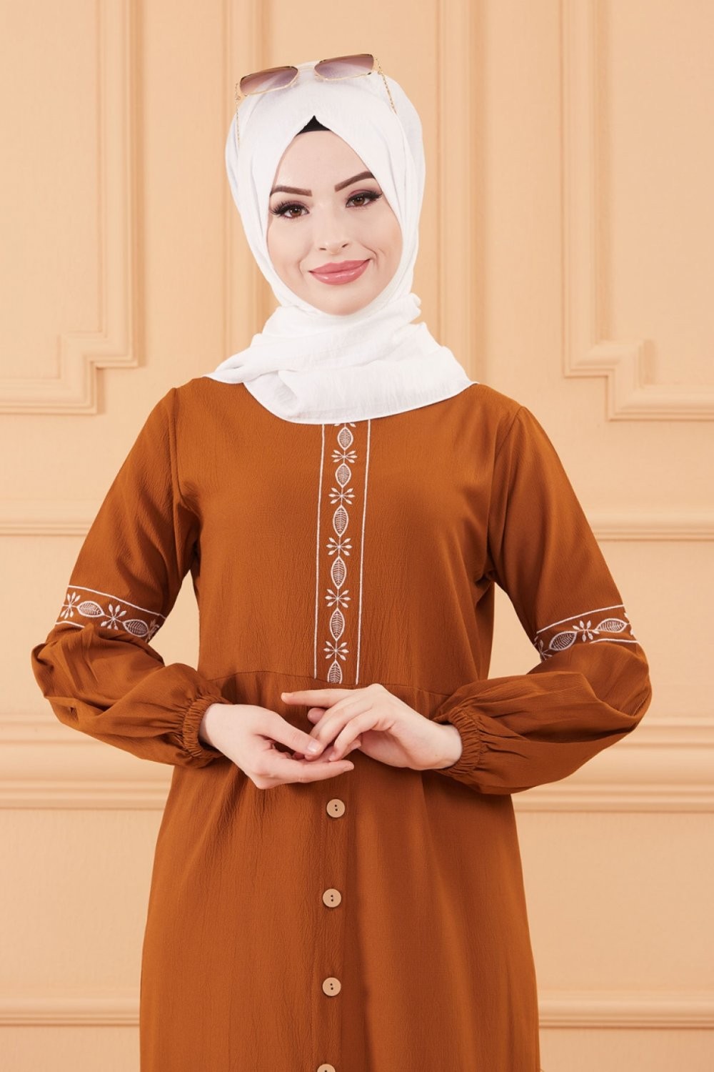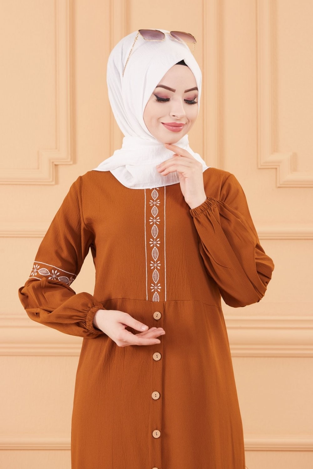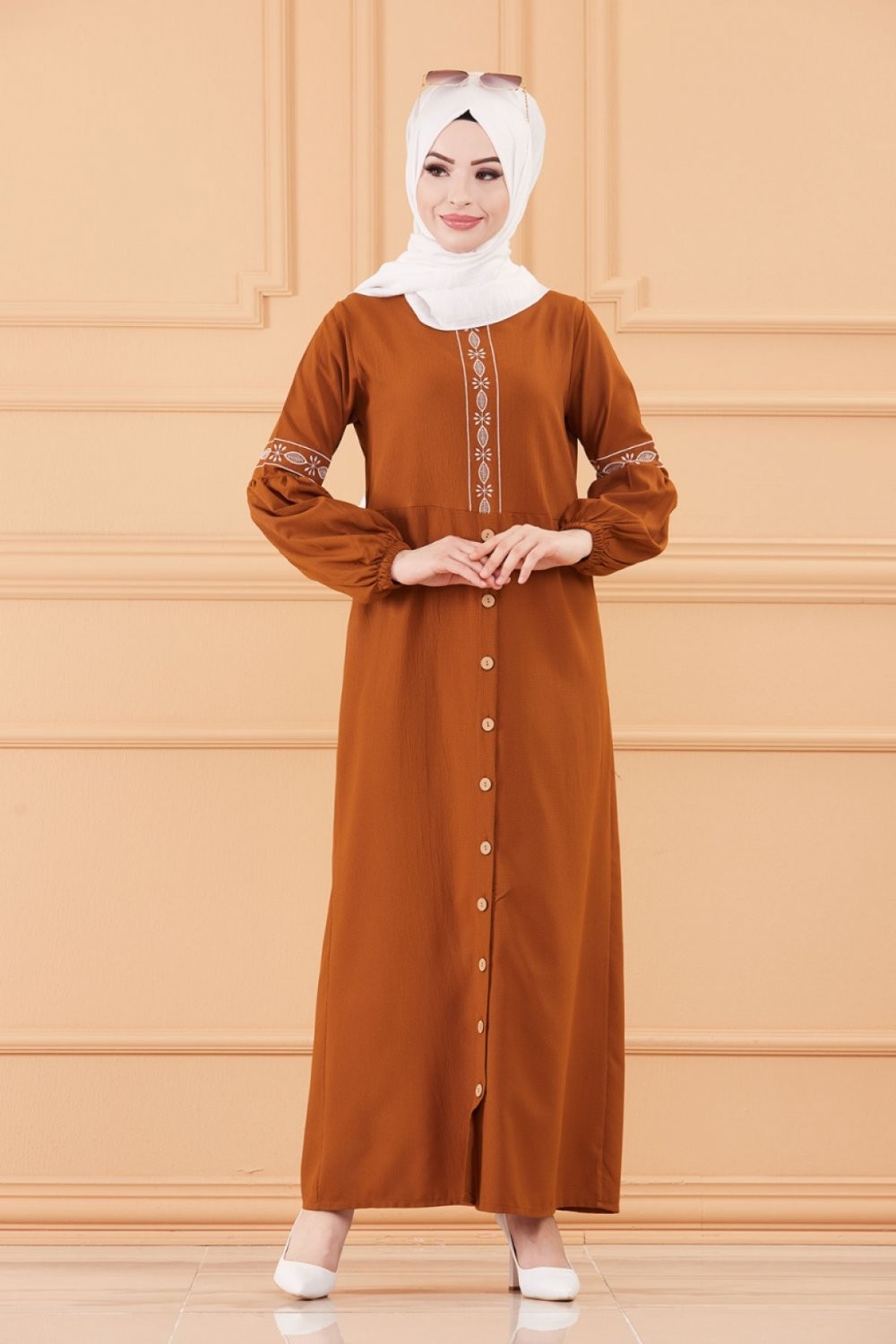 Robe longue brodée pour femme musulmane (Tenue Hijab style habillé) - Couleur tabac Vetement & Accessoire