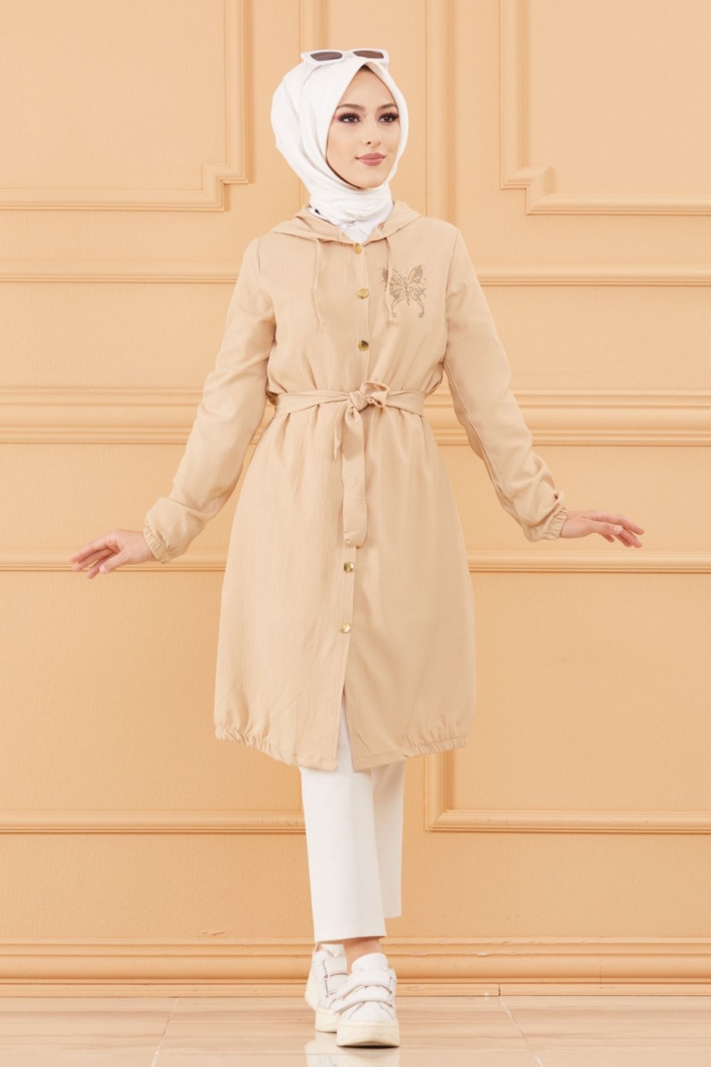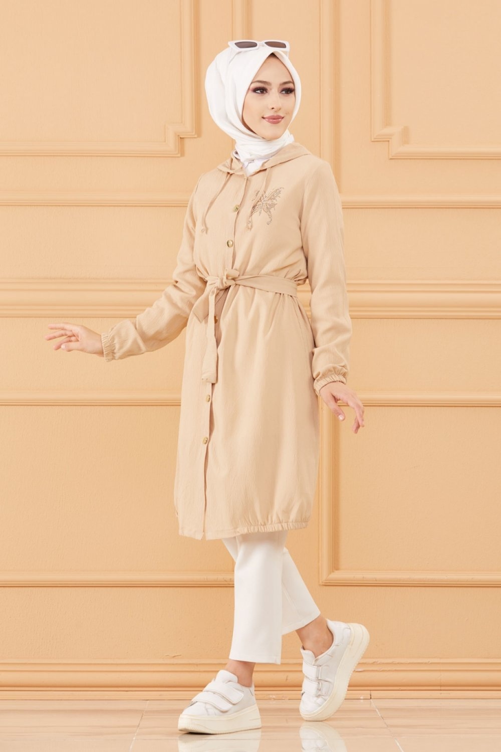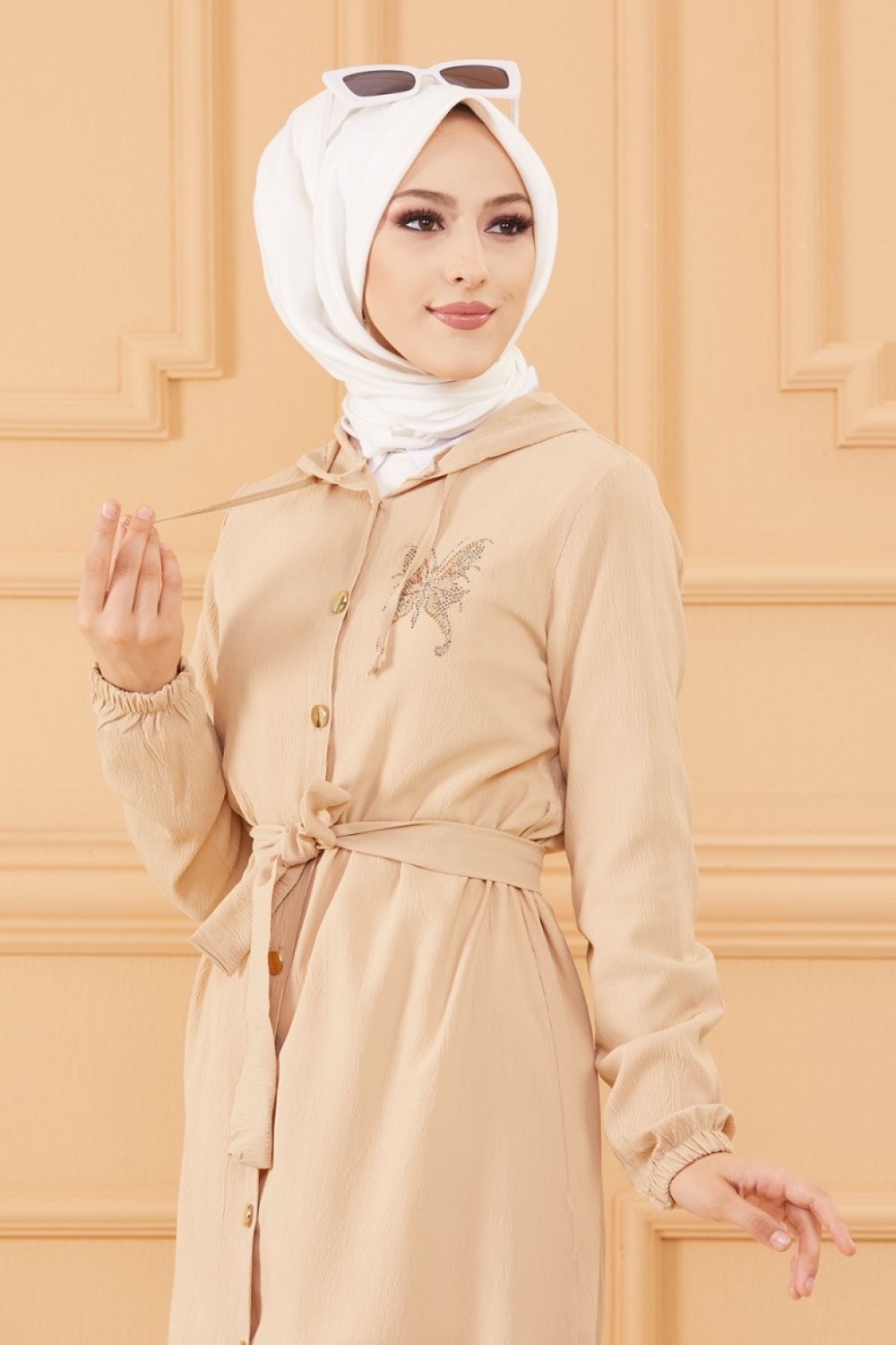 Tunique avec capuche et broderie papillon (Vetement pour femme voilee) - Couleur beige
