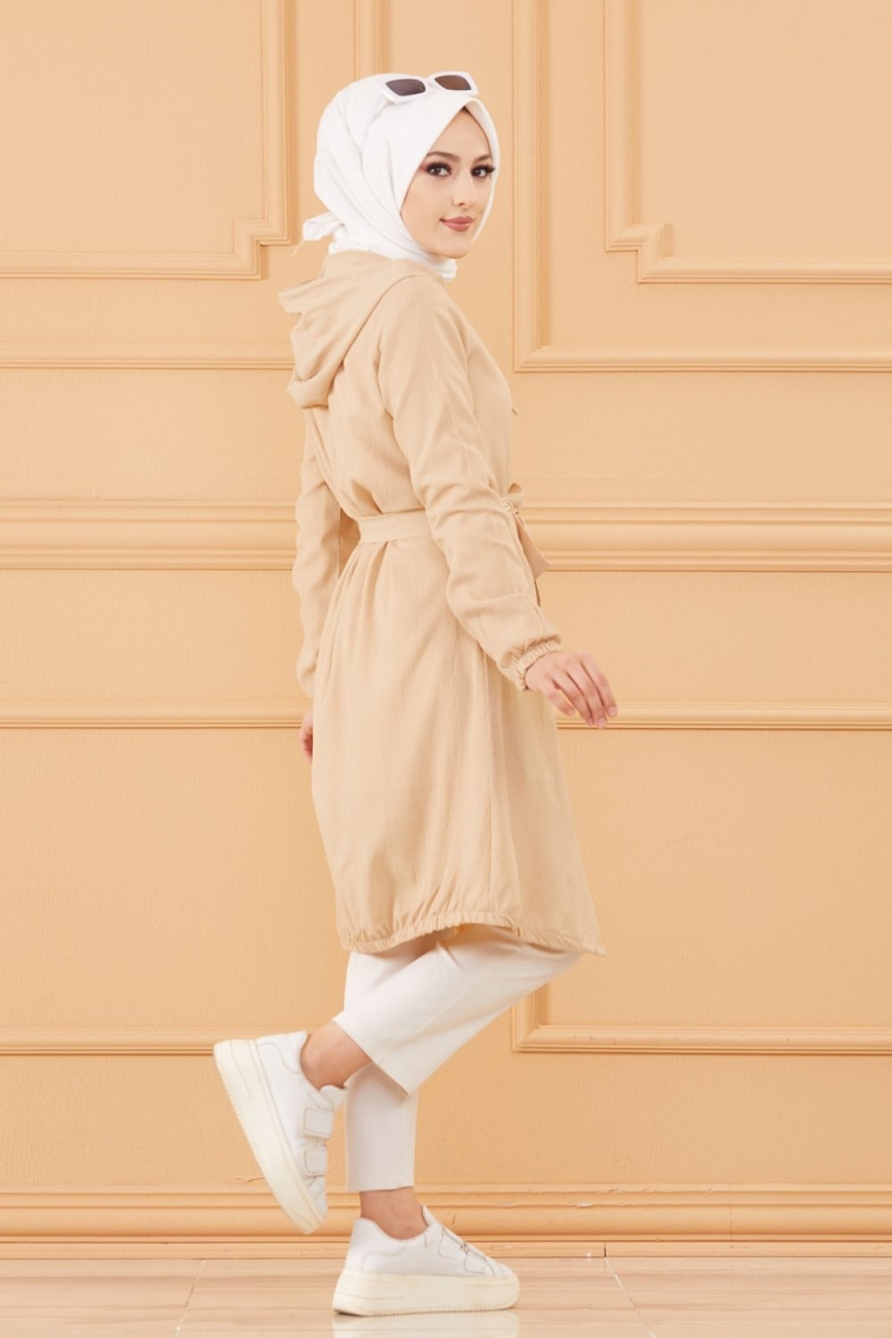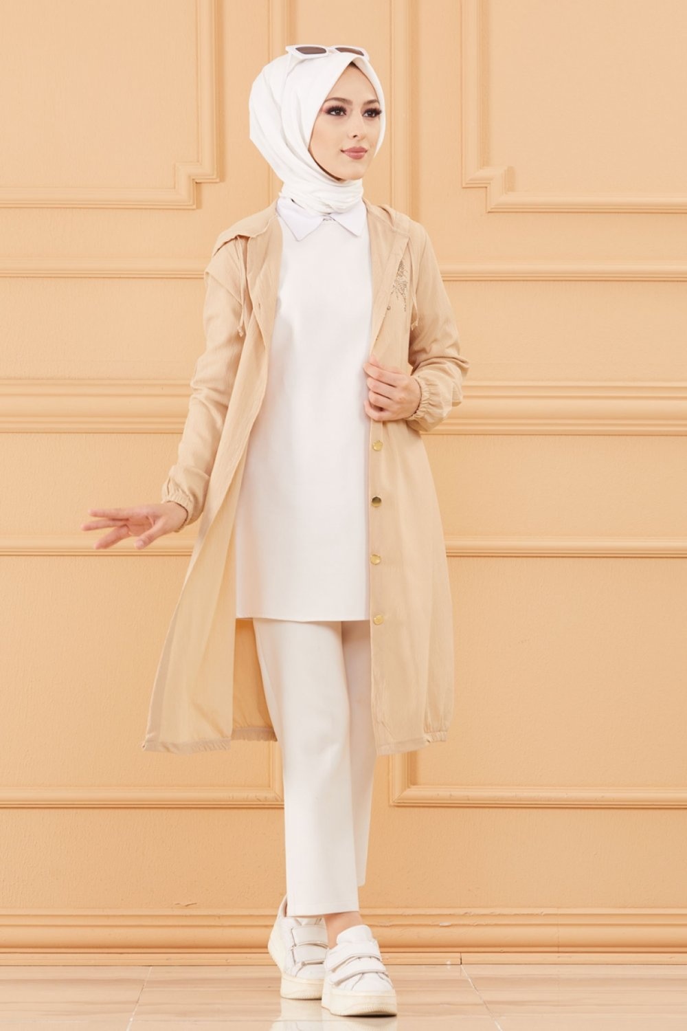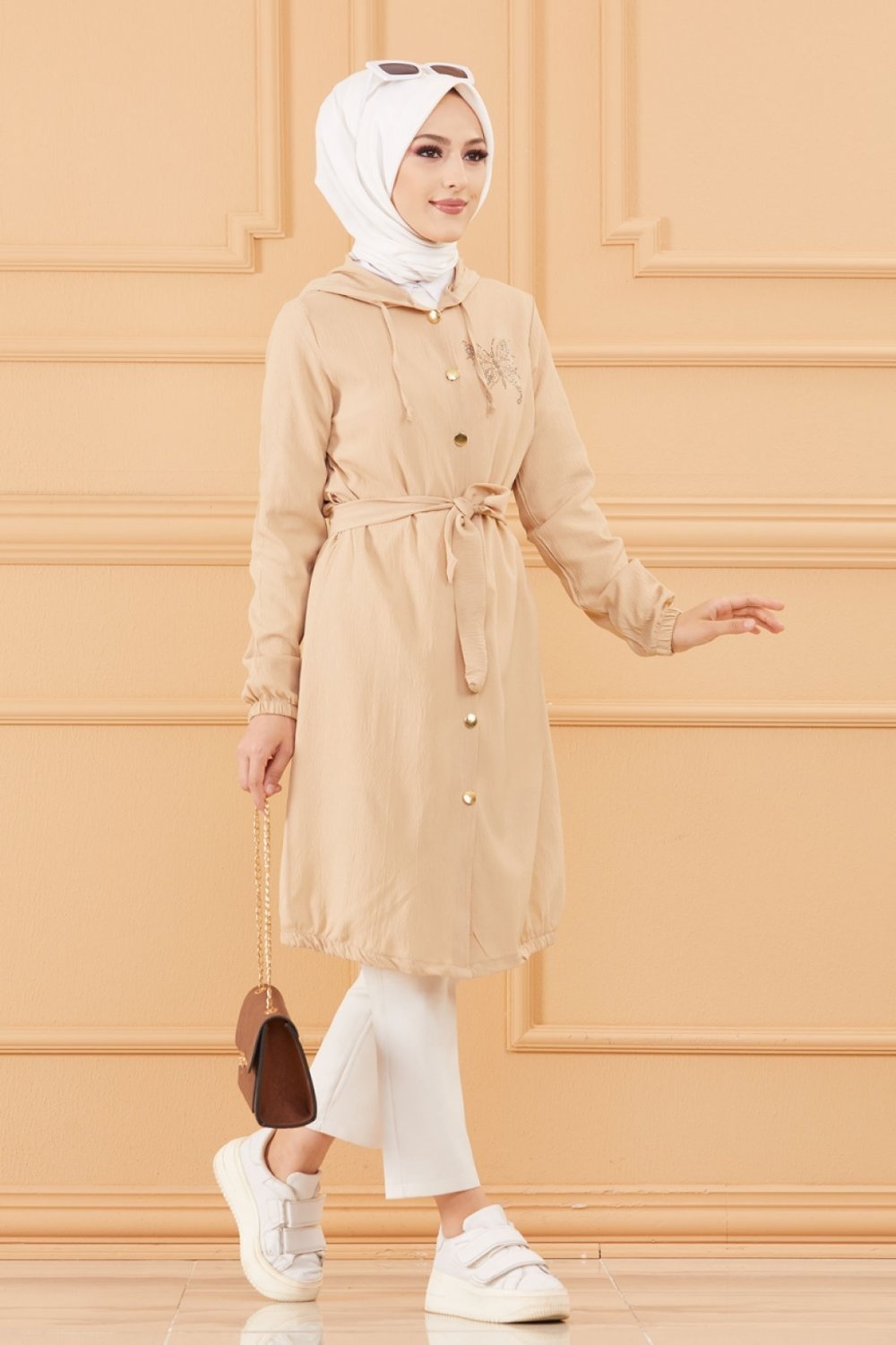 Tunique avec capuche et broderie papillon (Vetement pour femme voilee) - Couleur beige