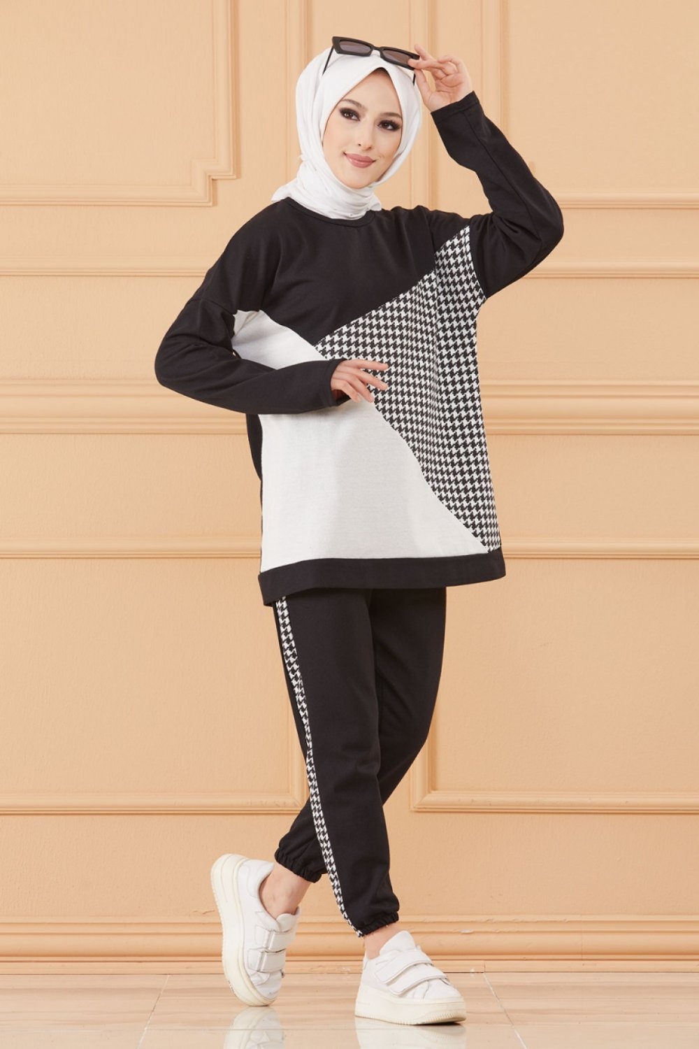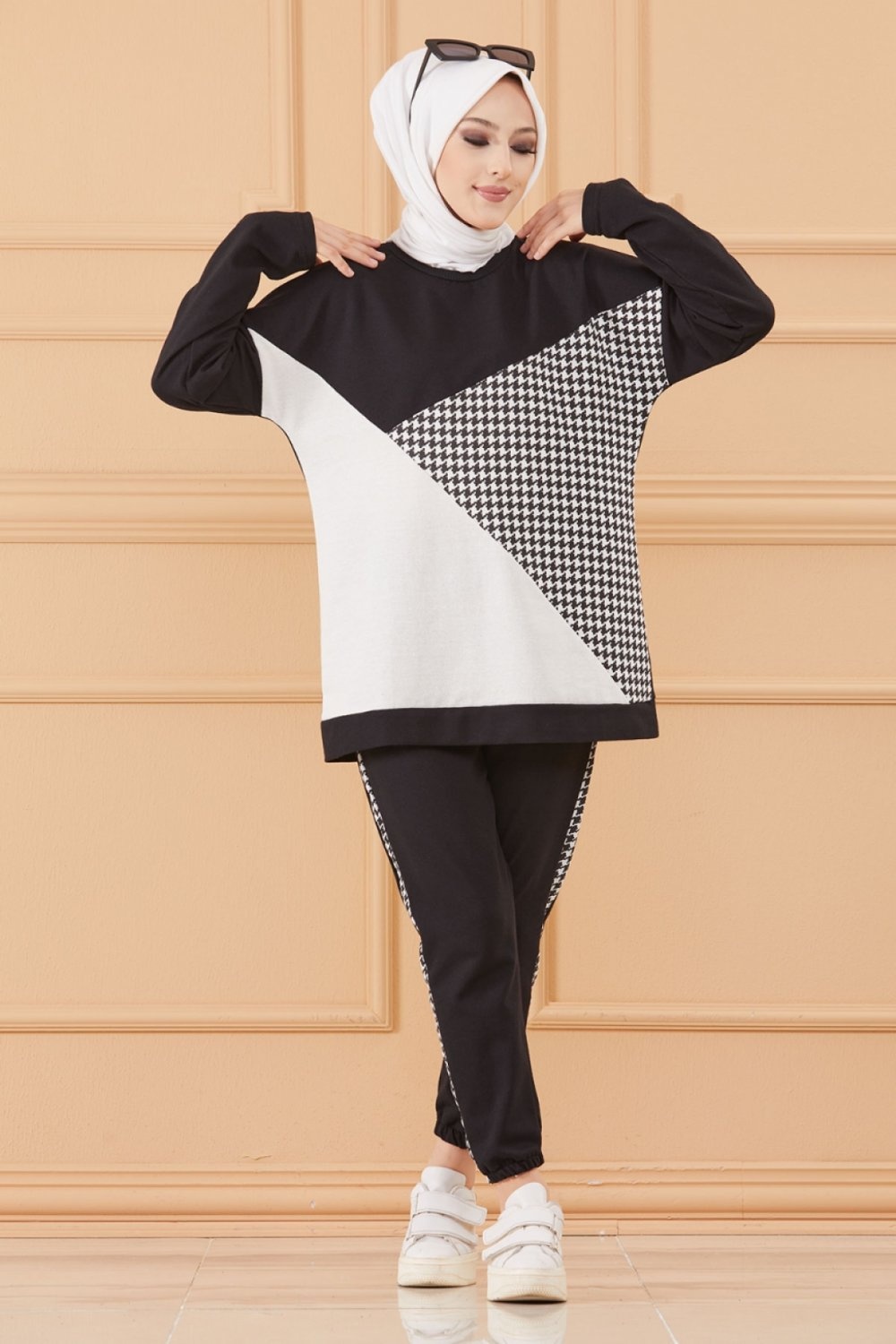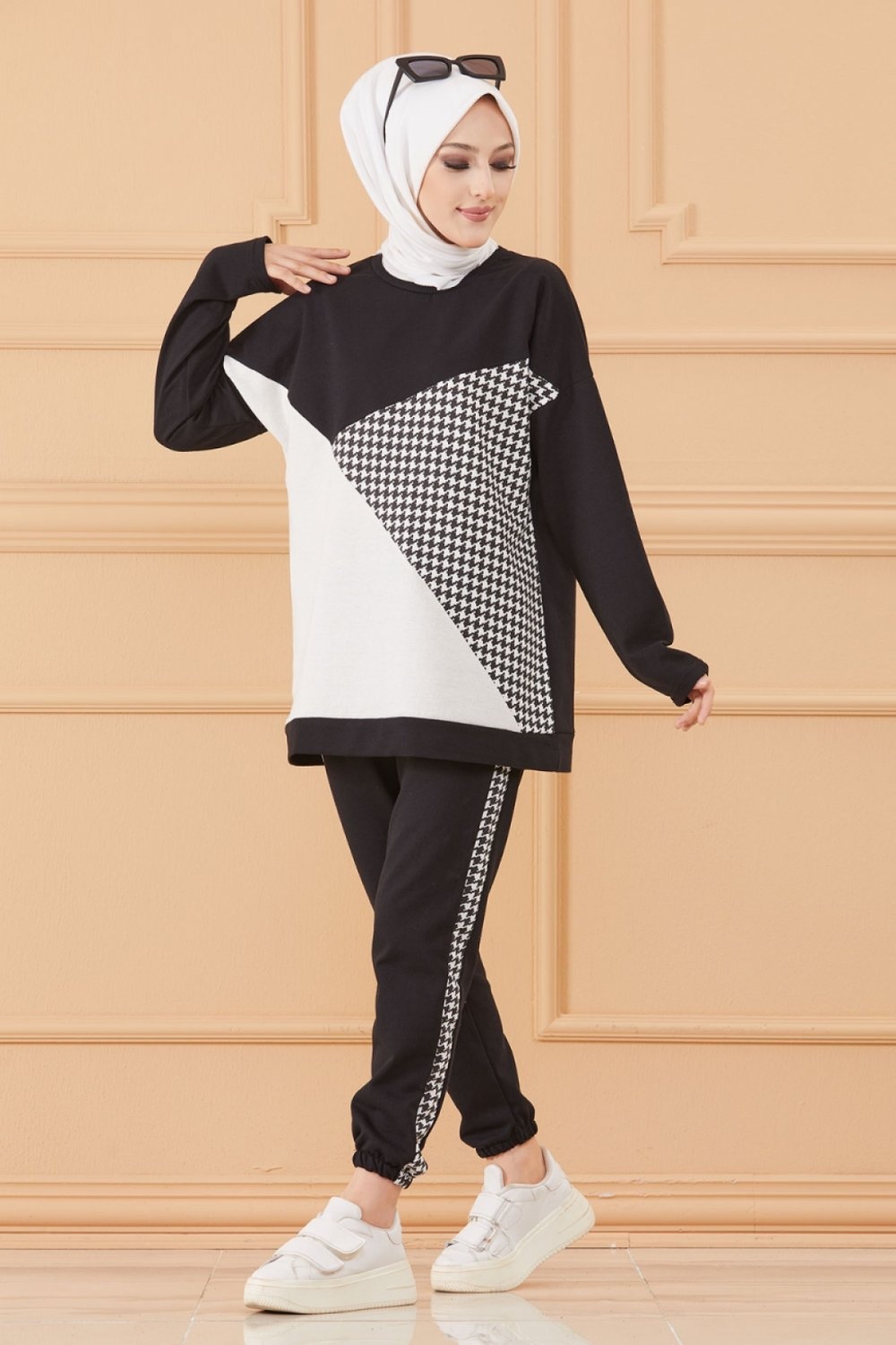 Survêtement original ample bicolore (Tenue Décontractée et Sport pour Hijab) - Couleur noir et blanc Vetement & Accessoire