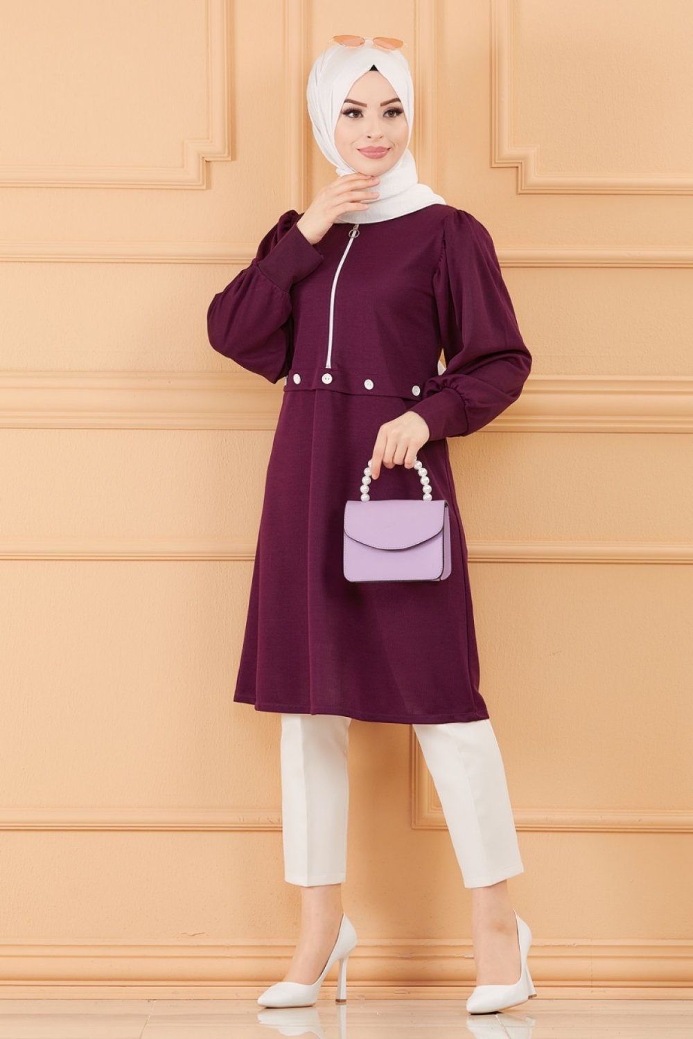 Tunique casual pour femme (Boutique Prêt-à-porter Vêtements Hijab pour Musulmanes) - Couleur prune Vetement & Accessoire