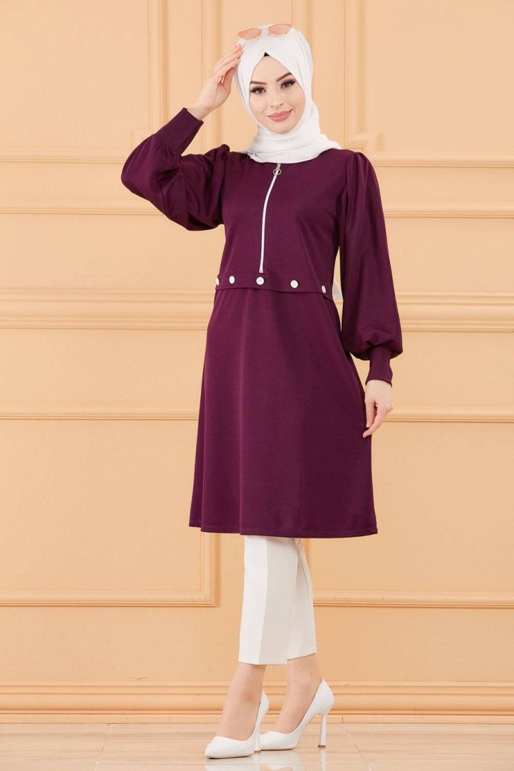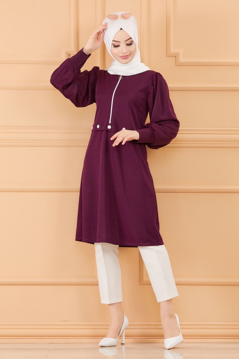 Tunique casual pour femme (Boutique Pret-a-porter Vetements Hijab pour Musulmanes) - Couleur prune