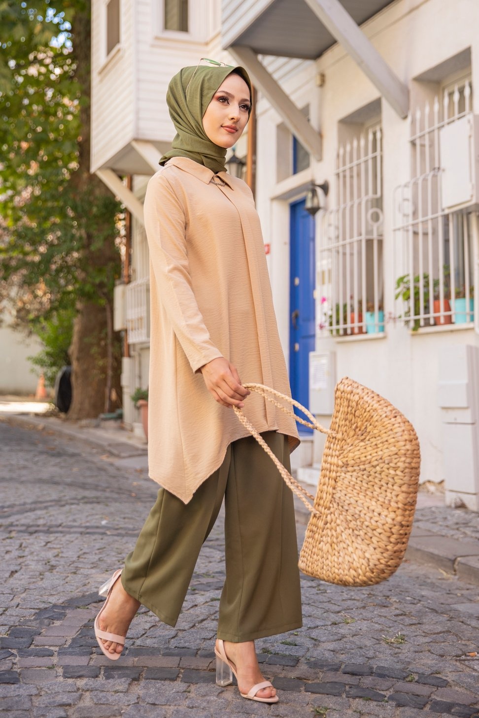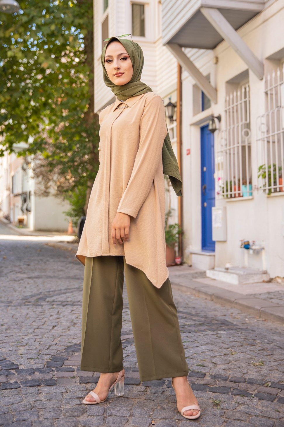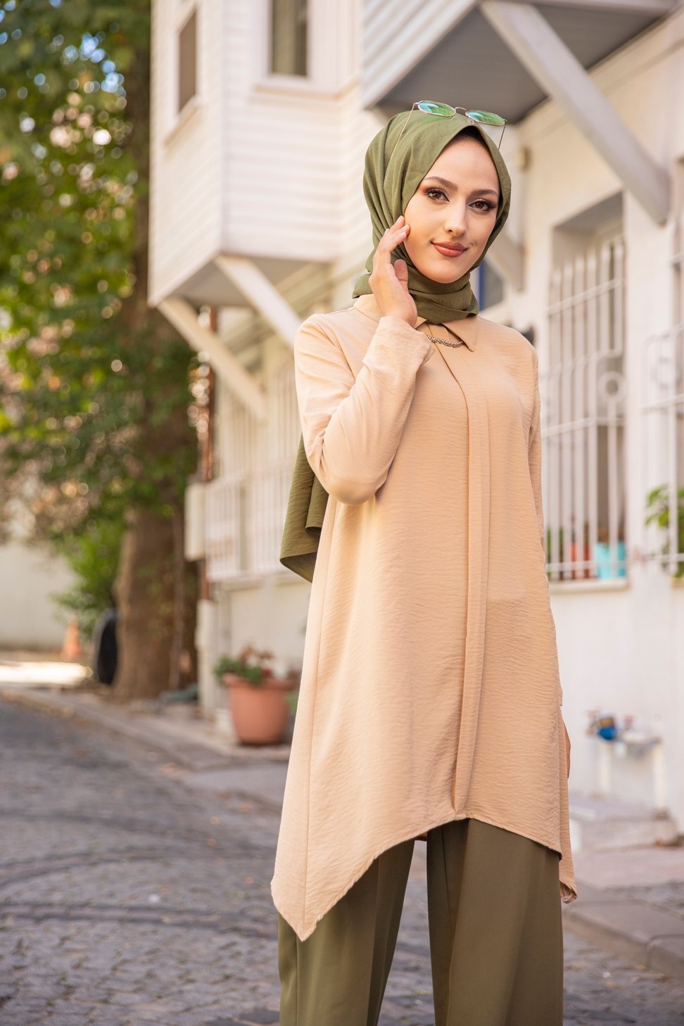 Tunique style habillé pour femme voilée (Vêtement hijab chic) - Couleur beige Vetement & Accessoire