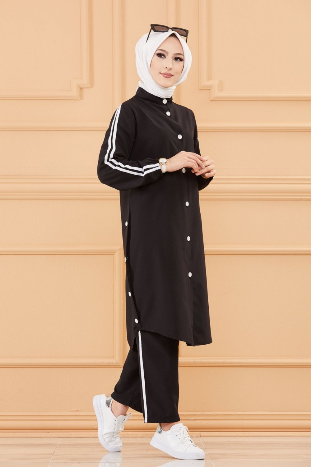Ensemble 2 pièces habillé style casual (Mode Islamique pour la femme musulmane voilée) - Couleur noir - REF. 33103 (29.00 €)